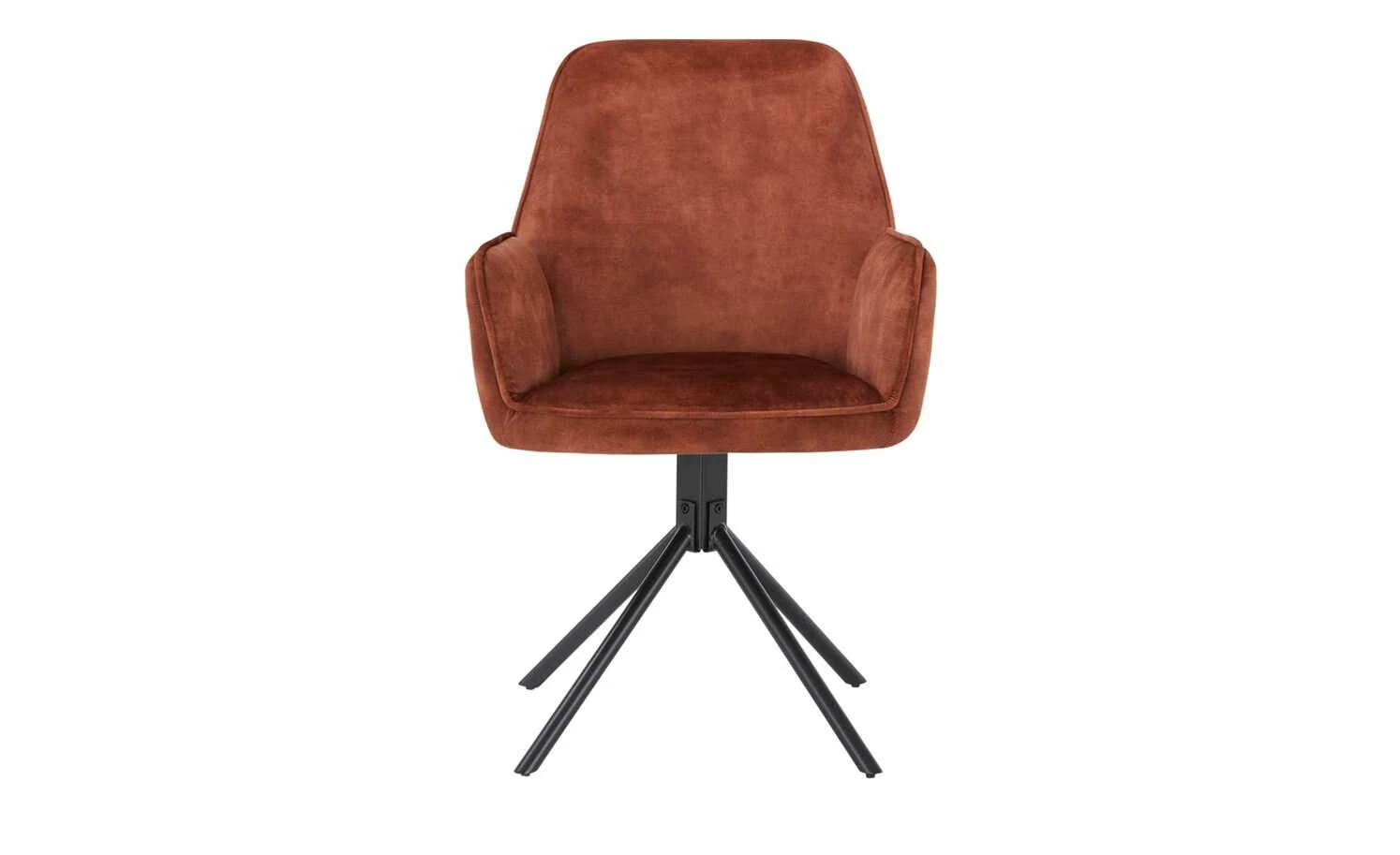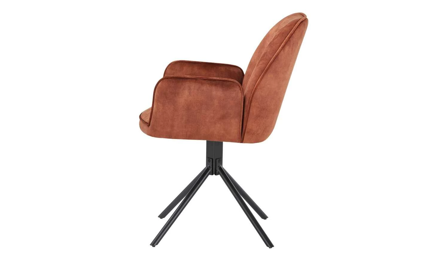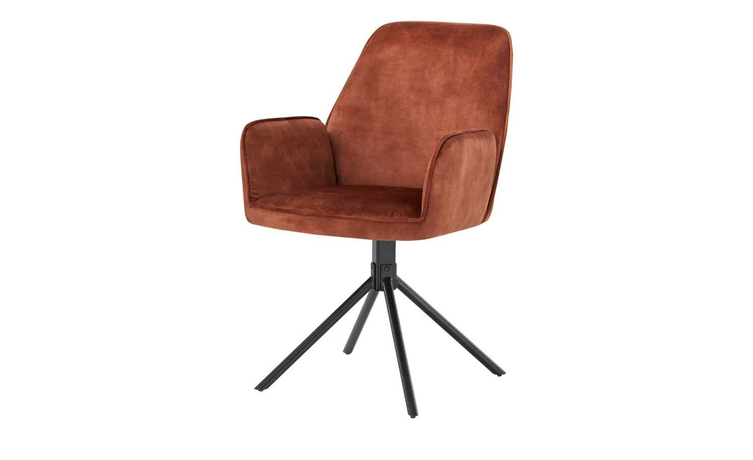 Der Armlehnstuhl Flynn greift den beliebten Industrial-Style gekonnt auf. Der zeigt sich in seinen schwarzen Füßen und dem Bezug in attraktivem Erd-Ton. Die komfortabel gepolsterte Sitzschale ist mit einem weichem Veloursbezug versehen und lädt zum Entspannen ein. Der Armlehnstuhl Flynn ist mit zahlreichen Einrichtungsstilen kompatibel und macht im Wohnzimmer, aber auch in der Küche am Esstisch eine gute Figur. Übrigens: Flynn gibt es auch als Modell ohne Armlehnen. Kombinieren Sie die beiden Stuhl-Varianten, um Ihre Sitzgruppe aufzulockern.