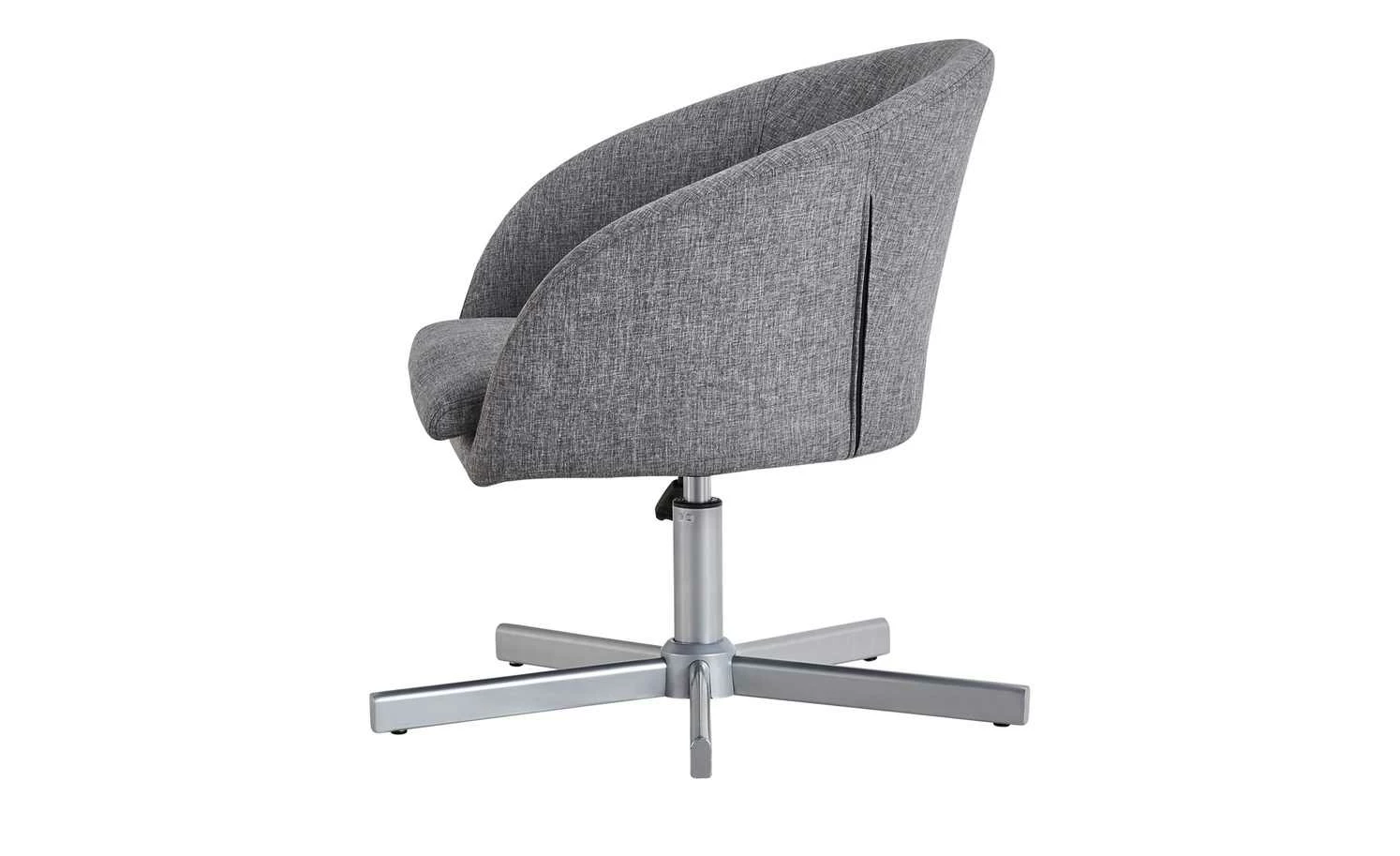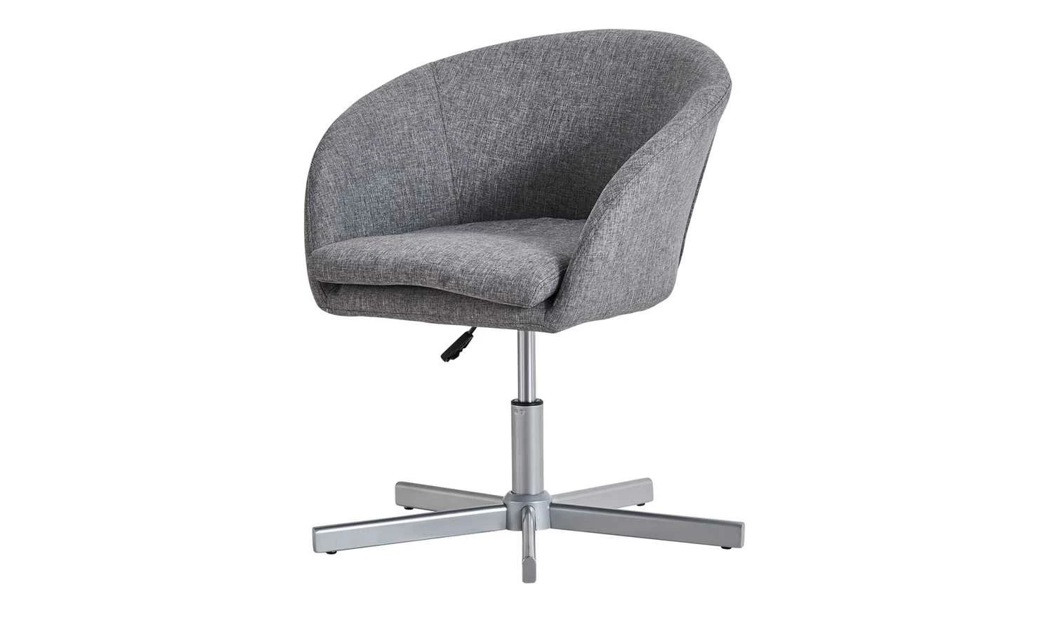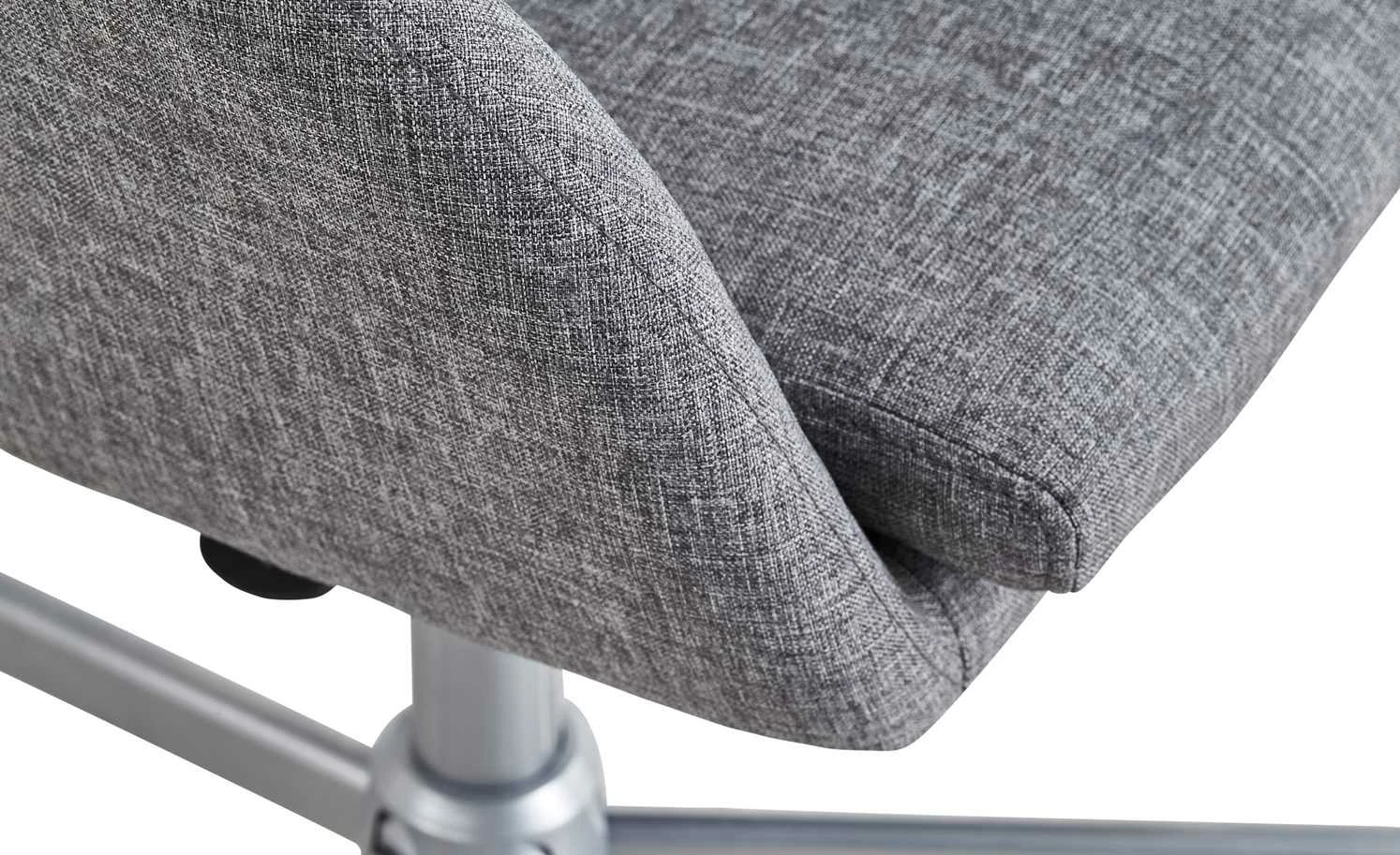 Modern designt und gemütlich – das ist der Bürodrehstuhl Bära 2. Die Sitzschale erinnert in ihrer Form ein wenig an einen Cocktailsessel. Und sie ist auch genauso bequem. Dafür sorgt die dicke Schaumstoffpolsterung unter dem melierten grauen Bezug. Sie können die Sitzhöhe von 42 bis 52 Zentimeter verstellen. Möglich macht das der kleine Hebel unterhalb der Sitzschale. Soll Bära 2 Rollen oder Gleiter haben? Das können Sie individuell bei der Montage entscheiden. Beides ist im Lieferumfang enthalten.