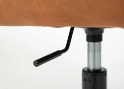 Für den heimischen Schreibtisch braucht es auch einen passenden Stuhl. So wie den Bürodrehstuhl Anglin. Die gesamte Sitzschale ist weich gepolstert und mit braunem Kunstleder bezogen. Die gesamte Vorderseite ist quadratisch gesteppt. Dank des kleinen Hebels unter der Sitzfläche können Sie den Drehstuhl in der Höhe verstellen. Das ist von 42 bis 50 Zentimeter möglich.