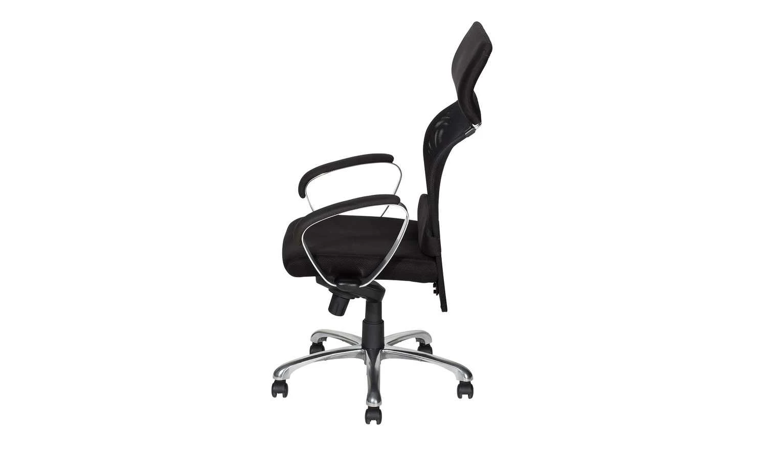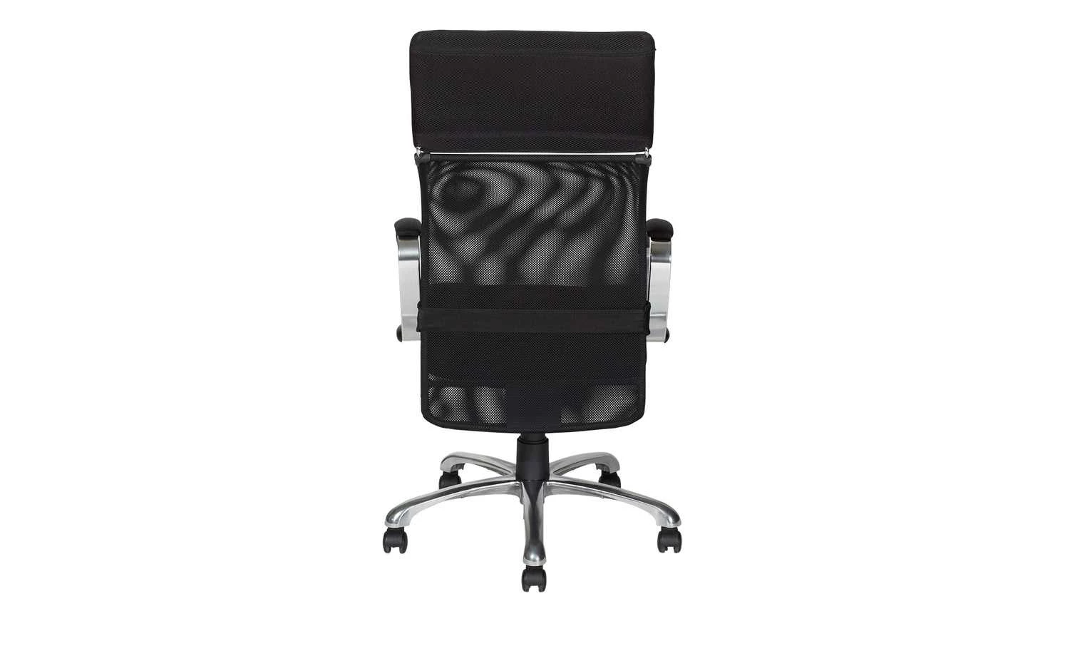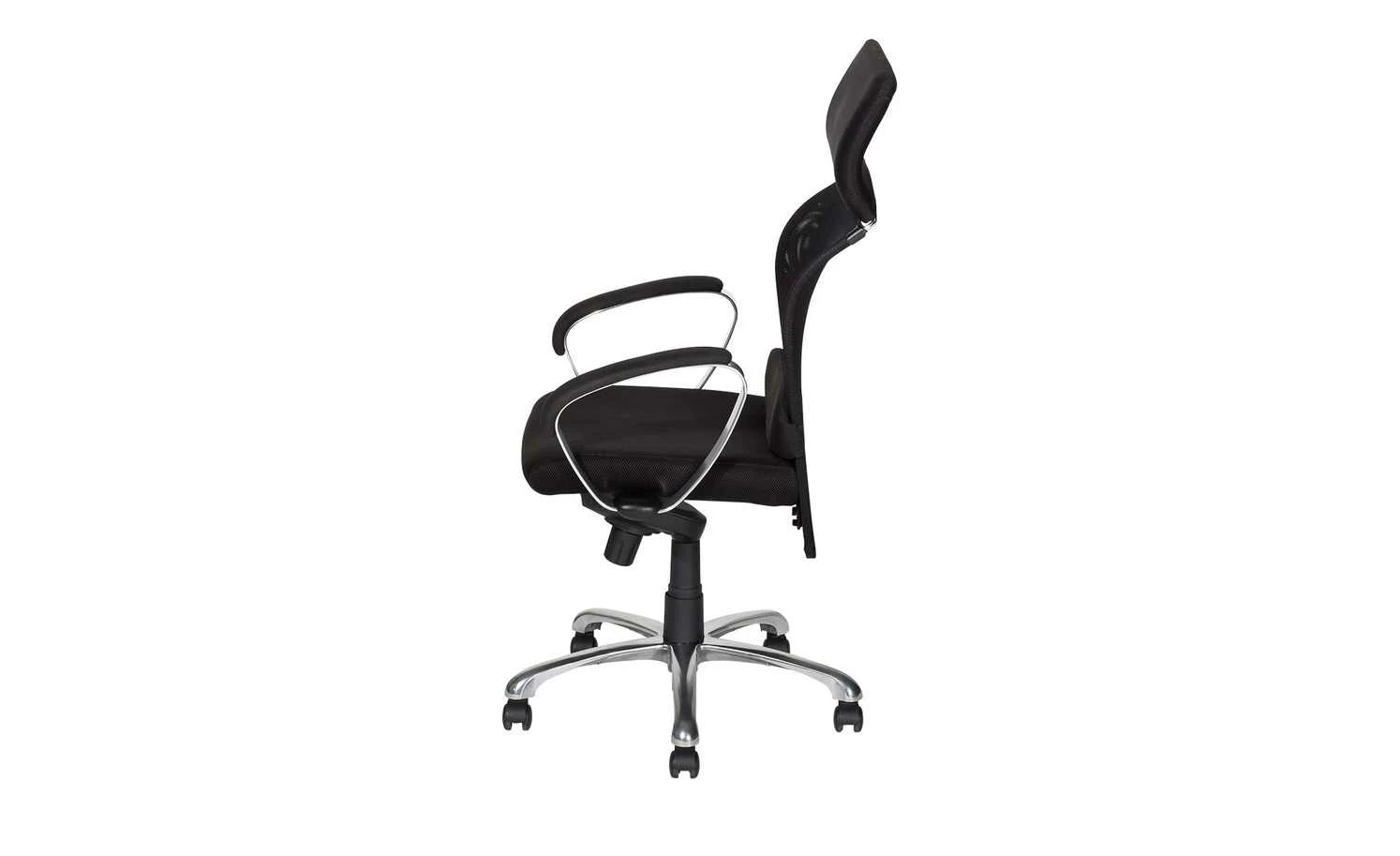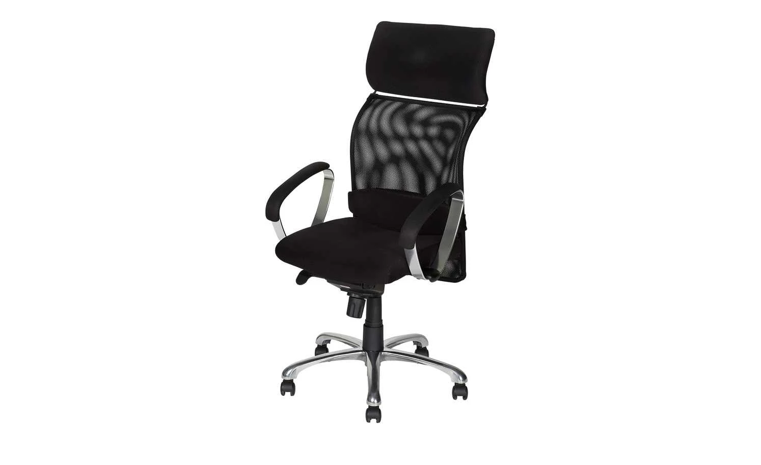 Wer lange und viel sitzen muss, legt auf eine bequeme Sitzposition wert. Der Chefsessel ist durch den praktischen Gas-Lift höhenverstellbar, wodurch man die Höhe individuell auf den Schreibtisch und die Körpergröße abstimmen kann. Eine in der Rückenlehne integrierte Lordosenstütze sorgt für eine Entspannung und Entlastung der Wirbelsäule. Für ein reibungsloses Arbeiten hat der Chefsessel Rollen, so dass man ihn schnell und leicht bewegen kann. Der Chefsessel bietet mit dem schwarzen Bezug und dem netzartigen Material an der Rückenlehne ein modernes Design. Das Fußkreuz ist aus Metall hergestellt und sorgt so für eine stabile Belastbarkeit.