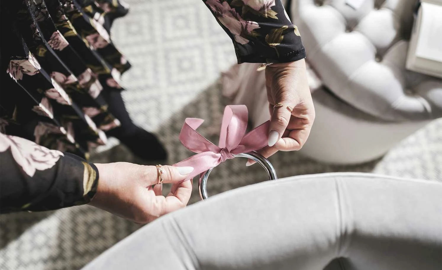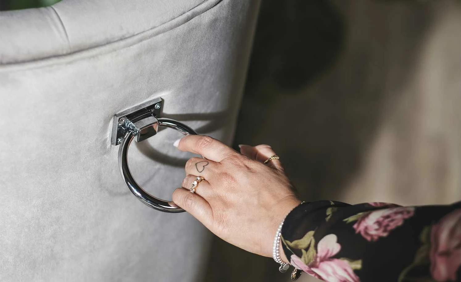 - Glänzender Samtbezug in Grau