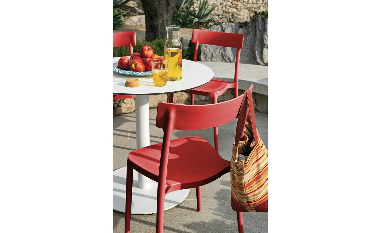 Italienisches Design für den Innen- und auch Außenbereich: Das ist der Stuhl Argo von Connubia. Der wetterfeste, minimalistisch designte Stuhl besteht aus pflegeleichtem, recyceltem Kunststoff. Dadurch kann er problemlos mit auf die Terrasse oder mit in den Garten genommen werden. Kombinieren Sie verschiedene Stuhlfarben miteinander und verleihen Sie Ihrem Essbereich Ihre persönliche Note. Außerdem praktisch: Sie können bis zu vier dieser Stühle platzsparend übereinanderstapeln.