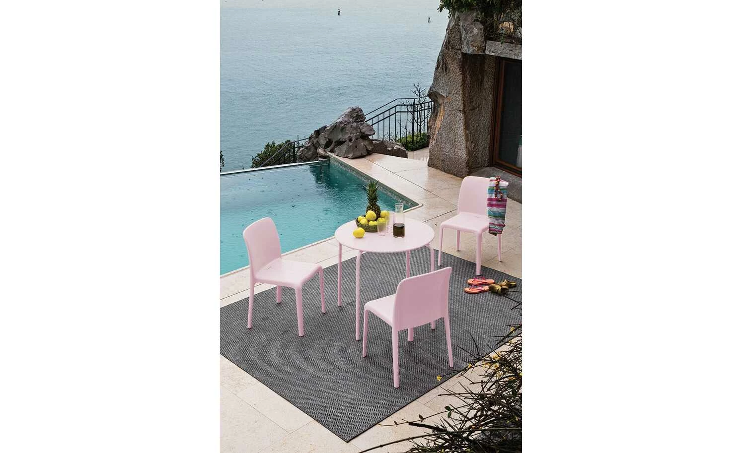 Sommerlich, pastellig und perfekt für den Außenbereich: Der Stuhl Bayo der Marke Connubia bringt italienisches Design jetzt auch nach draußen. Der minimalistisch designte Stuhl verzichtet auf überflüssige Linien und konzentriert sich auf das nötigste. Das Ergebnis: Ein absoluter Eyecatcher für Garten, Terrasse und Küche. Der verwendete recycelte Kunststoff ist pflegeleicht und wetterfest. Wählen Sie hier ganz einfach Ihre Lieblingsfarben und gestalten Sie Ihren Essbereich ganz nach Ihren Wünschen. Außerdem praktisch: Den trendigen Stuhl gibt es mit und ohne Armlehnen. So können Sie verschiedene Farben und Varianten miteinander kombinieren und Ihren Essbereich auflockern oder optisch unterteilen. Sie können bis zu vier dieser Stühle platzsparend übereinanderstapeln.