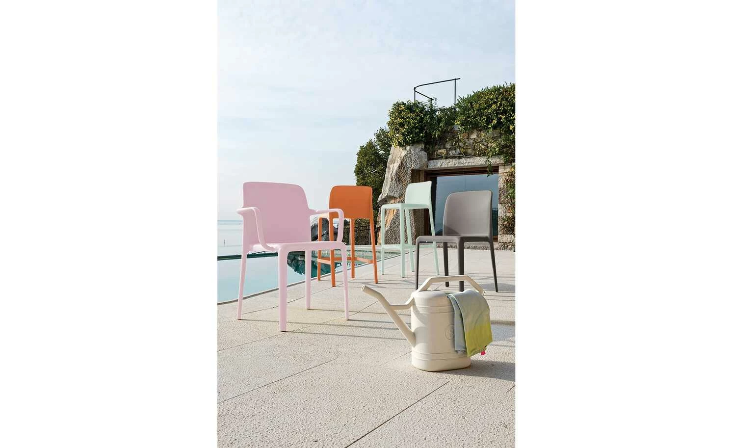 Sommerlich, pastellig und perfekt für den Außenbereich: Der Stuhl Bayo der Marke Connubia bringt italienisches Design jetzt auch nach draußen. Der minimalistisch designte Stuhl verzichtet auf überflüssige Linien und konzentriert sich auf das nötigste. Das Ergebnis: Ein absoluter Eyecatcher für Garten, Terrasse und Küche. Der verwendete recycelte Kunststoff ist pflegeleicht und wetterfest. Wählen Sie hier ganz einfach Ihre Lieblingsfarben und gestalten Sie Ihren Essbereich ganz nach Ihren Wünschen. Außerdem praktisch: Den trendigen Stuhl gibt es mit und ohne Armlehnen. So können Sie verschiedene Farben und Varianten miteinander kombinieren und Ihren Essbereich auflockern oder optisch unterteilen. Sie können bis zu vier dieser Stühle platzsparend übereinanderstapeln.