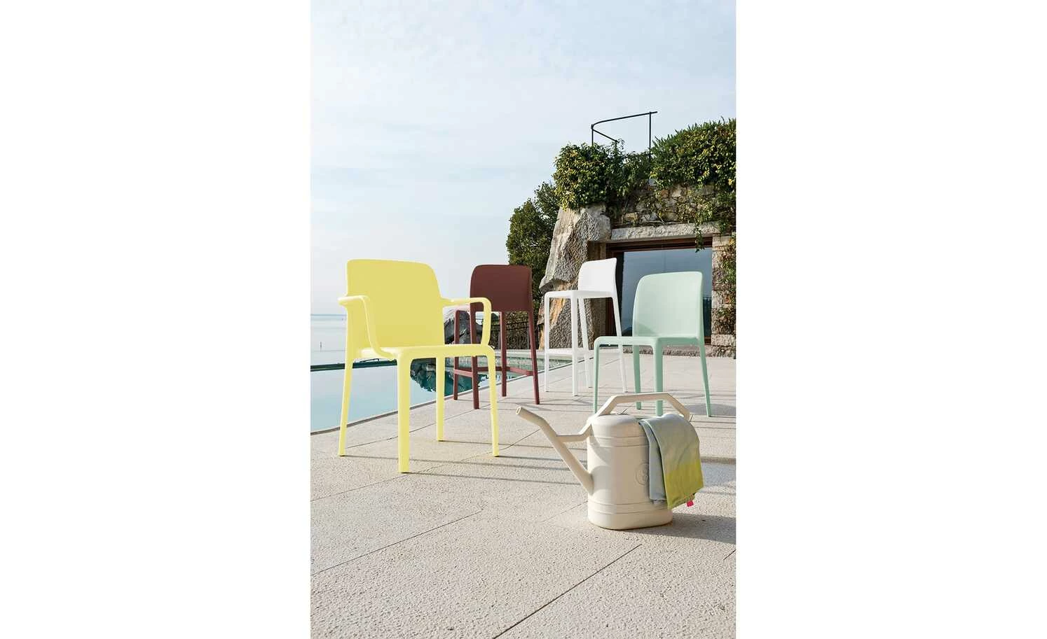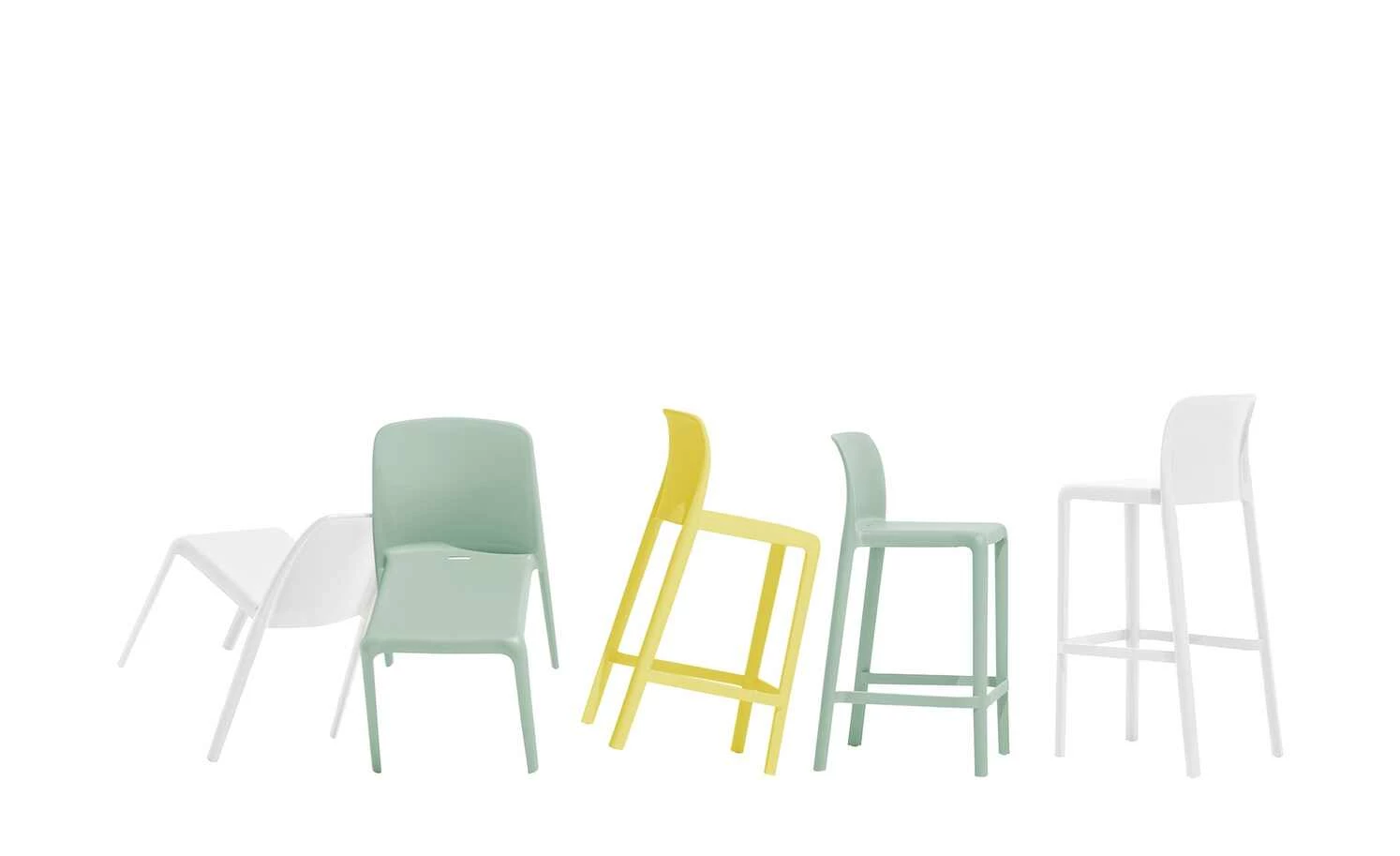 Sommerlich, pastellig und perfekt für den Außenbereich: Der Stuhl Bayo der Marke Connubia bringt italienisches Design jetzt auch nach draußen. Der minimalistisch designte Stuhl verzichtet auf überflüssige Linien und konzentriert sich auf das nötigste. Das Ergebnis: Ein absoluter Eyecatcher für Garten, Terrasse und Küche. Der verwendete recycelte Kunststoff ist pflegeleicht und wetterfest. Wählen Sie hier ganz einfach Ihre Lieblingsfarben und gestalten Sie Ihren Essbereich ganz nach Ihren Wünschen. Außerdem praktisch: Den trendigen Stuhl gibt es mit und ohne Armlehnen. So können Sie verschiedene Farben und Varianten miteinander kombinieren und Ihren Essbereich auflockern oder optisch unterteilen. Sie können bis zu vier dieser Stühle platzsparend übereinanderstapeln.