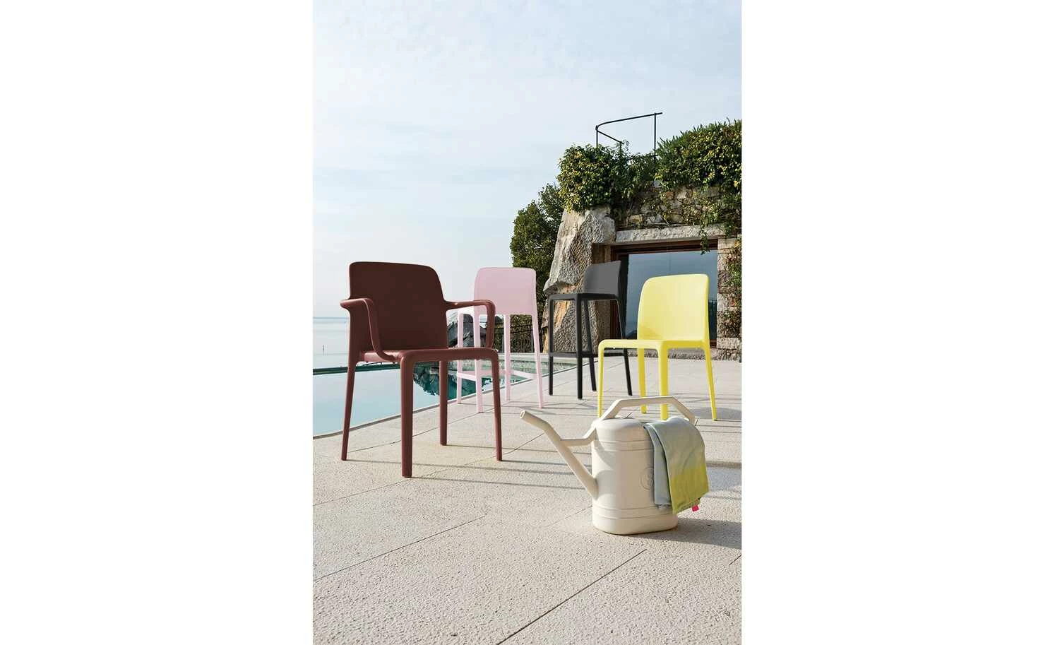 Sommerlich, pastellig und perfekt für den Außenbereich: Der Stuhl Bayo der Marke Connubia bringt italienisches Design jetzt auch nach draußen. Der minimalistisch designte Stuhl verzichtet auf überflüssige Linien und konzentriert sich auf das nötigste. Das Ergebnis: Ein absoluter Eyecatcher für Garten, Terrasse und Küche. Der verwendete recycelte Kunststoff ist pflegeleicht und wetterfest. Wählen Sie hier ganz einfach Ihre Lieblingsfarben und gestalten Sie Ihren Essbereich ganz nach Ihren Wünschen. Außerdem praktisch: Den trendigen Stuhl gibt es mit und ohne Armlehnen. So können Sie verschiedene Farben und Varianten miteinander kombinieren und Ihren Essbereich auflockern oder optisch unterteilen. Sie können bis zu vier dieser Stühle platzsparend übereinanderstapeln.