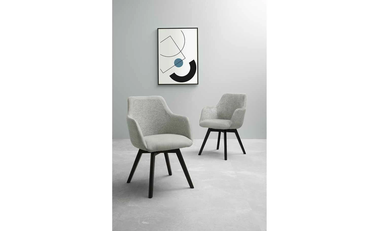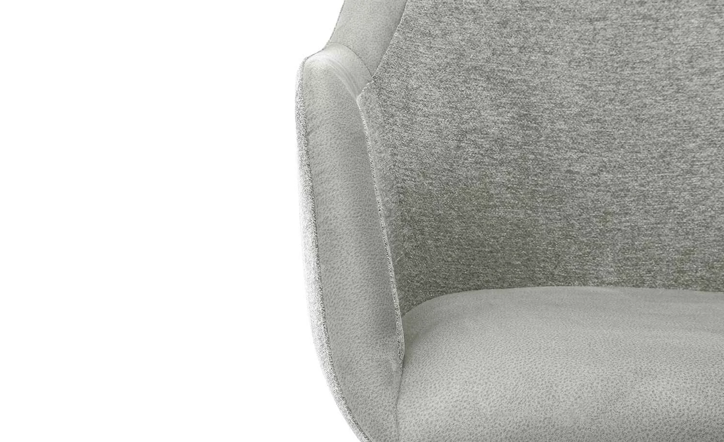 - Art des Bezuges: Rücken- und Armlehnen-Innen- sowie Außenfläche: melierter Webstoff / Sitz sowie Kassettenrahmen: genarbte Mikrofaser