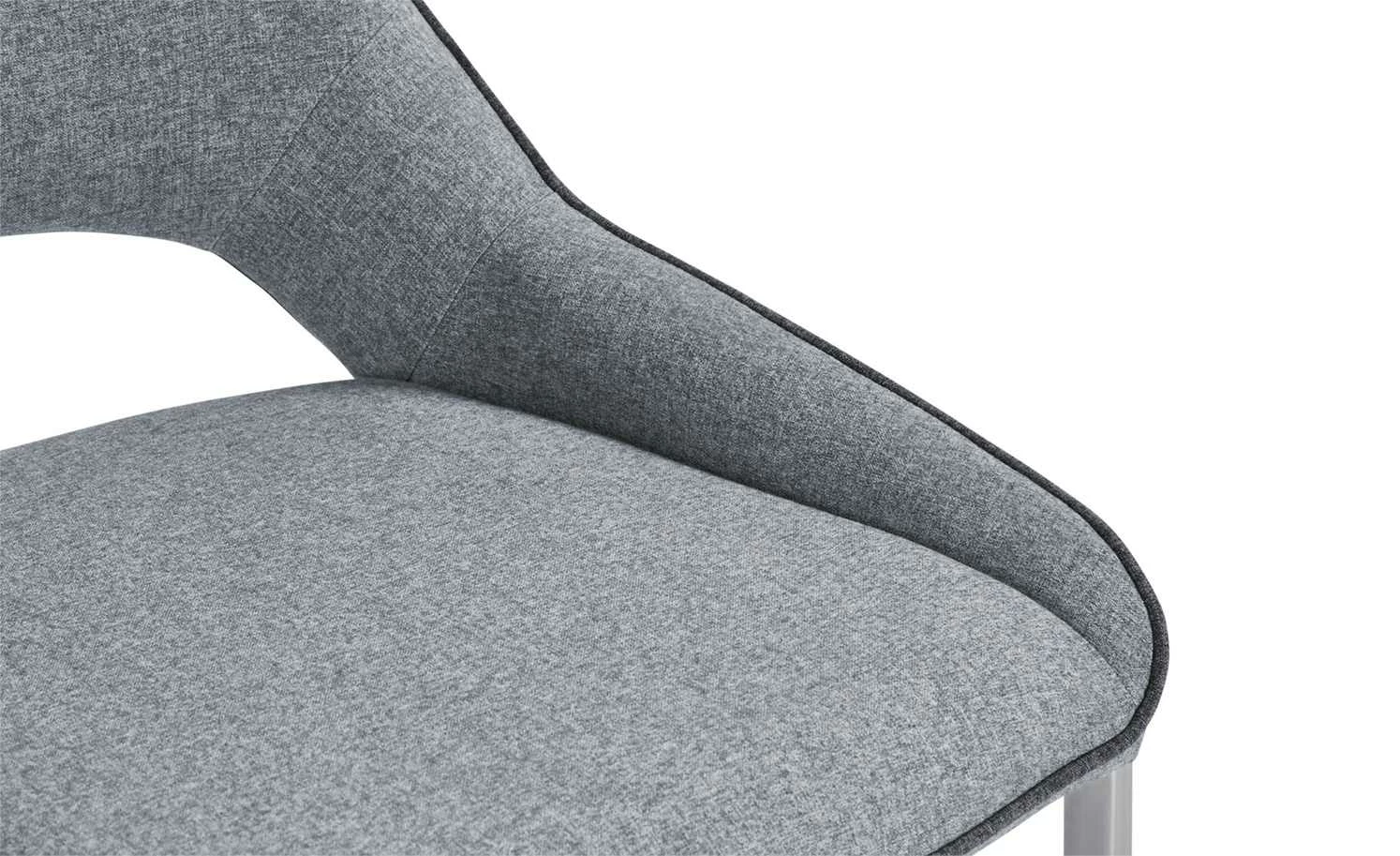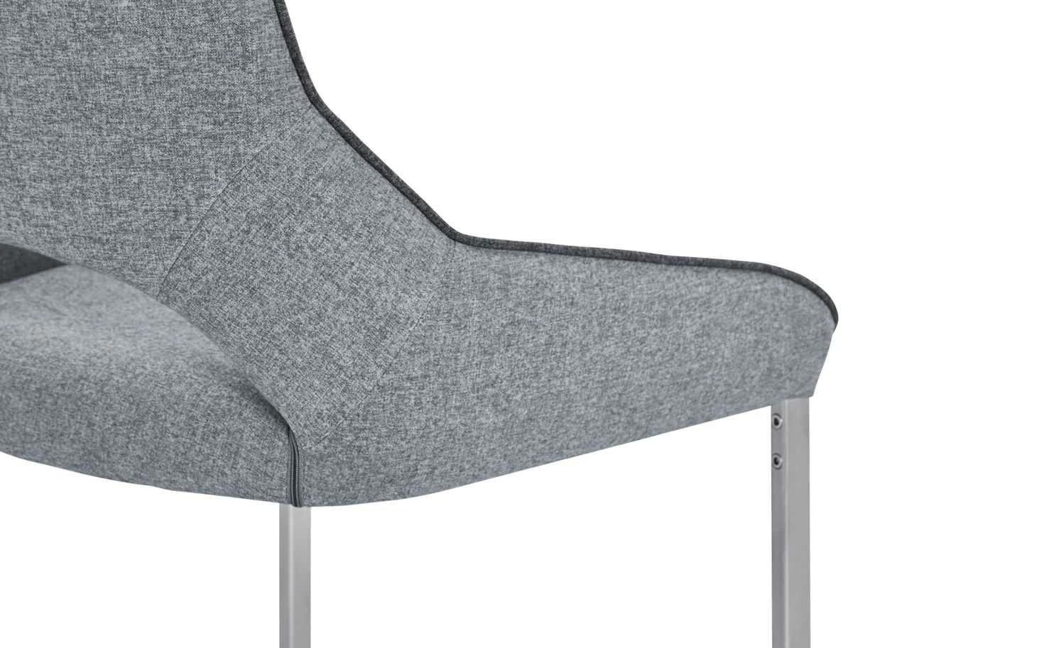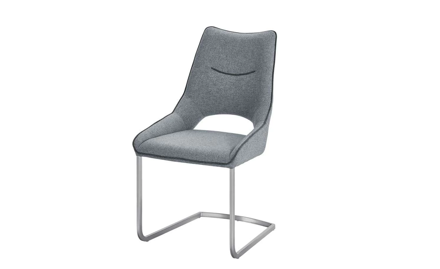 Der Schwingstuhl Lenira bringt ein junges, modernes Design an den Esstisch. Die hohe Rückenlehne ist im unteren Bereich offen designt – und geht seitlich in den Sitzbereich über. Eine dekorative Quernaht befindet sich an Vorder- und Rückseite der Lehne. Ihre geschwungen Optik greift den schwungvollen Look des oberen Lehnenrandes auf. Der ganze Sitz- und Rückenbereich wird zudem von einem Keder umrandet. Er setzt sich dezent vom melierten Webstoffbezug ab. Lenira ist weich gepoltert, damit Sie es beim Essen richtig bequem haben.