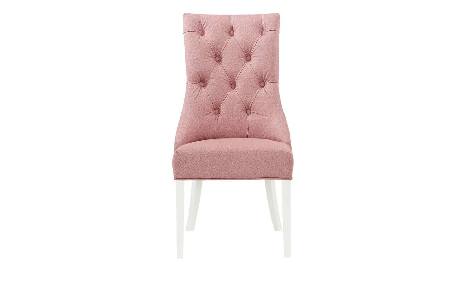 Luftig, leichter Landhaus-Charme verströmt der Polsterstuhl Cap Ferrat Two. Die hohe Rückenlehne ist rautenförmig im Chesterfield-Stil gesteppt und elegant geschwungen. Dekorative Zierknöpfe unterstreichen das französische Landhaus-Flair und bringen den fein strukturierten Webstoff besonders gut zur Geltung. Der sanfte Pastellton bildet dabei einen edlen Kontrast zu den weiß lackierten Füßen aus massivem Buchenholz. Die hinteren Füße sind elegant geschwungen und lassen den gesamten Stuhl einladend und gemütlich erscheinen. Angedeutete Armlehnen verleihen dem Polsterstuhl zusätzlich eine nostalgische Note.