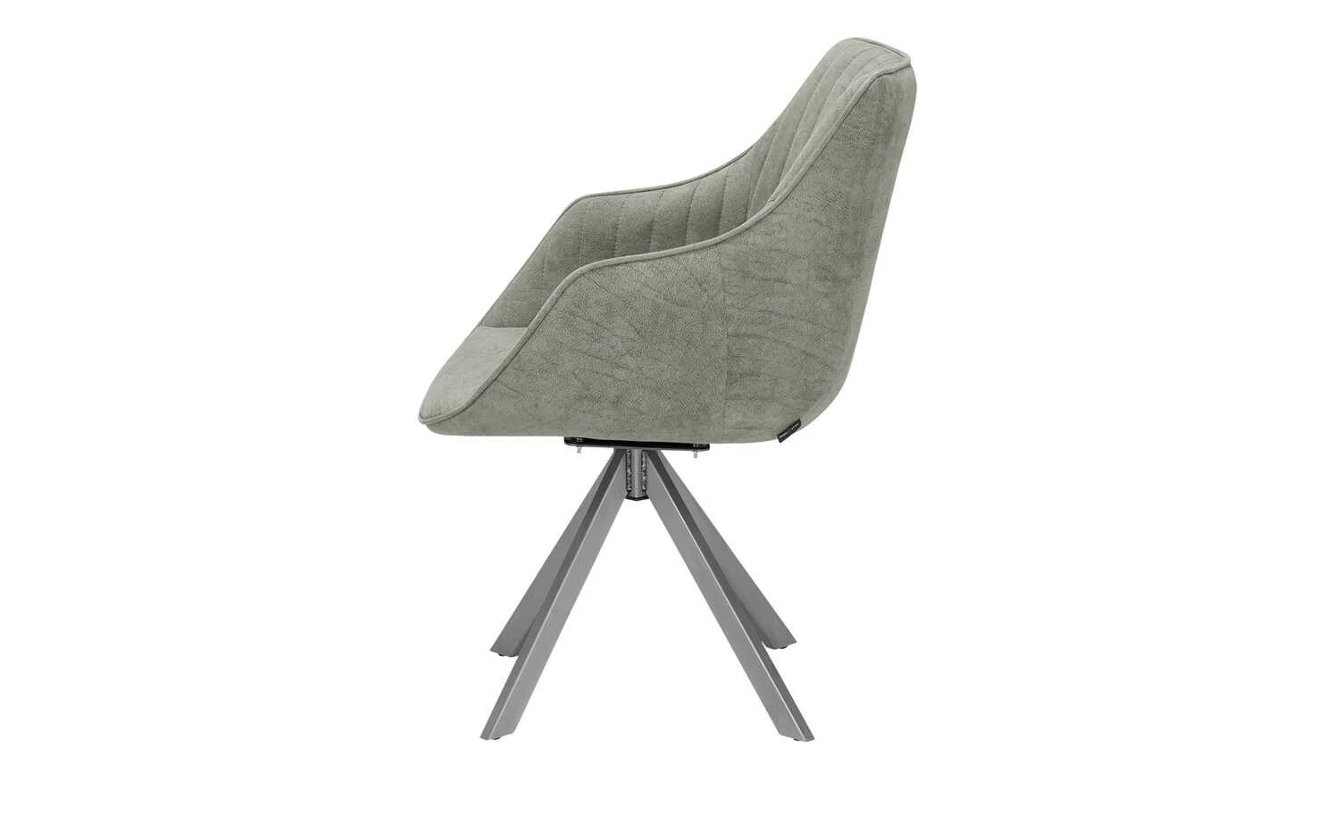 Moderne Eleganz trifft auf stilbewussten Komfort: Der Polsterstuhl der Serie Baltic Breeze Two vereint ungleiche Materialien zu einem stimmigen Gesamtdesign. Das auffällige Stativgestell aus gebürstetem Metall wirkt modern und edel zugleich. Das eigentlich grobe Material wird hier in schmalen, schräg zulaufenden Füßen ganz leicht zum filigranen Eyecatcher. Die einladende, gepolsterte Sitzschale thront auf dem drehbaren Gestell und erinnert mit ihren geschwungenen Armlehnen an einen Sessel. Ein umlaufender Keder betont die sanften Linien und setzt die längs gesteppte Innenseite gekonnt in Szene. Der weiche, pflegeleichte Mikrofaserstoff erzeugt einen authentischen Vintage-Style. Der Polsterstuhl lässt sich ganz leicht um 180 Grad drehen und erschafft eine spannende Mischung aus Dynamik und Gemütlichkeit. Durch die Rückholfunktion kehrt der Stuhl nach jeder Nutzung von ganz allein in seine ursprüngliche Position zurück. Übrigens: Damit auch empfindliche Böden geschont werden, sind Filz-Fußgleiter im Lieferumfang selbstverständlich enthalten.