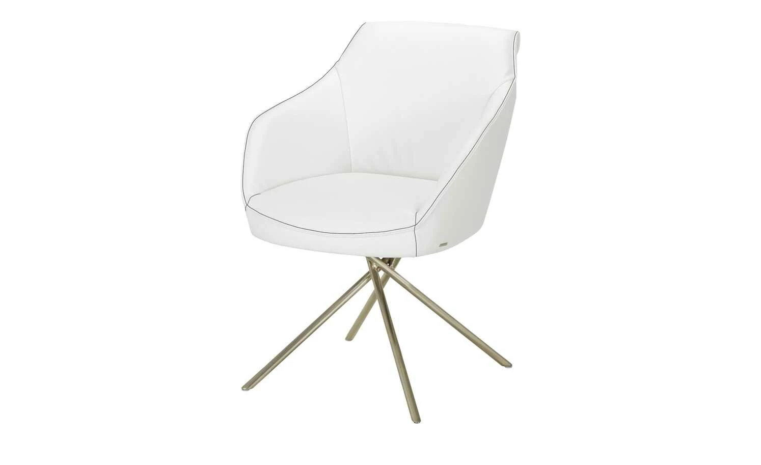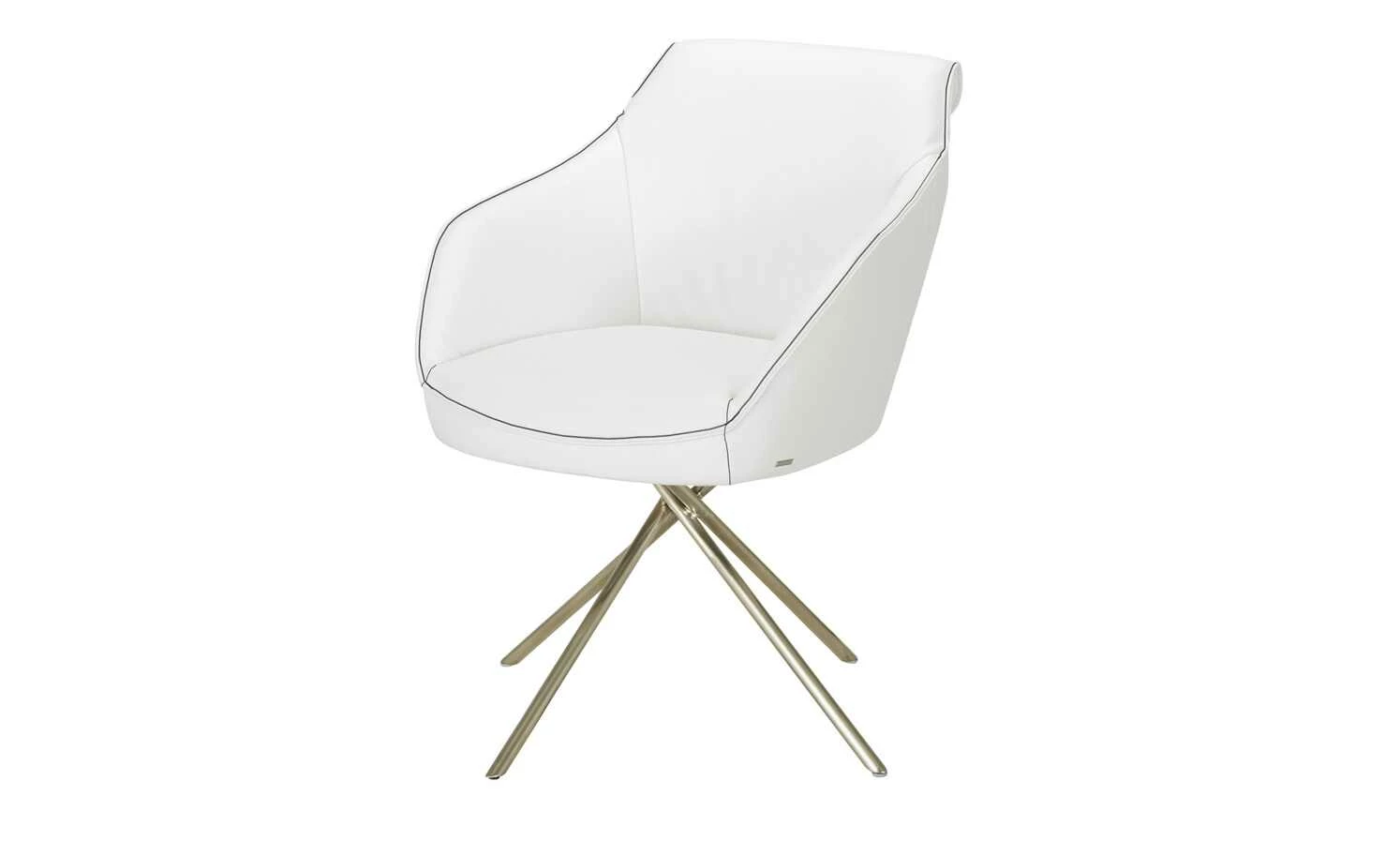 Mit dem Armlehnstuhl Dining System 1 holen Sie sich moderne Eleganz in Ihre Küche oder ins Wohn- und Speisezimmer. Die komfortabel gepolsterte Sitzschale steht auf verspielt arrangierten Metallfüßen aus satiniertem Nickel. Das Mikado-Gestell mündet in einer Drehvorrichtung, sodass sich die die Sitzschale kinderleicht drehen und in die gewünschte Position bringen lässt. Die Materialkombination aus Metall und seidenmattem Nappaleder sorgt für ein modernes Erscheinungsbild, das zu zahlreichen Einrichtungsstilen passt. Auch die Sitzhöhe von ca. 50 Zentimetern ist mit diversen Esstischen kompatibel. Unikate gefertigt in Bayern: Die Marke KOINOR steht für einzigartige Komfortfunktionen und individuelles Design. Unter Verwendung hochwertigster Materialien entstehen Möbel mit Vorzeigecharakter.