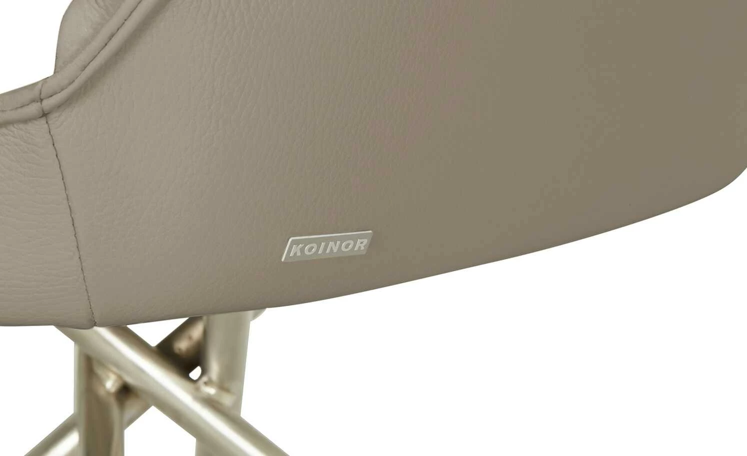 Mit dem Armlehnstuhl Dining System 1 holen Sie sich moderne Eleganz in Ihre Küche oder ins Wohn- und Speisezimmer. Die komfortabel gepolsterte Sitzschale steht auf verspielt arrangierten Metallfüßen aus satiniertem Nickel. Das Mikado-Gestell mündet in einer Drehvorrichtung, sodass sich die die Sitzschale kinderleicht drehen und in die gewünschte Position bringen lässt. Die Materialkombination aus Metall und seidenmattem Nappaleder sorgt für ein modernes Erscheinungsbild, das zu zahlreichen Einrichtungsstilen passt. Auch die Sitzhöhe von ca. 50 Zentimetern ist mit diversen Esstischen kompatibel. Unikate gefertigt in Bayern: Die Marke KOINOR steht für einzigartige Komfortfunktionen und individuelles Design. Unter Verwendung hochwertigster Materialien entstehen Möbel mit Vorzeigecharakter.