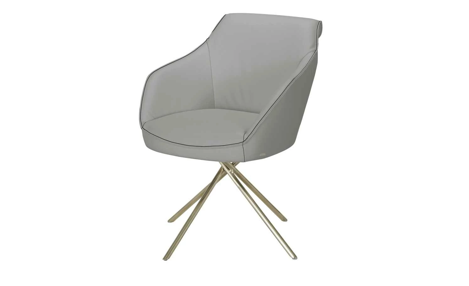 Mit dem Armlehnstuhl Dining System 1 holen Sie sich moderne Eleganz in Ihre Küche oder ins Wohn- und Speisezimmer. Die komfortabel gepolsterte Sitzschale steht auf verspielt arrangierten Metallfüßen aus satiniertem Nickel. Das Mikado-Gestell mündet in einer Drehvorrichtung, sodass sich die die Sitzschale kinderleicht drehen und in die gewünschte Position bringen lässt. Die Materialkombination aus Metall und seidenmattem Nappaleder sorgt für ein modernes Erscheinungsbild, das zu zahlreichen Einrichtungsstilen passt. Auch die Sitzhöhe von ca. 50 Zentimetern ist mit diversen Esstischen kompatibel. Unikate gefertigt in Bayern: Die Marke KOINOR steht für einzigartige Komfortfunktionen und individuelles Design. Unter Verwendung hochwertigster Materialien entstehen Möbel mit Vorzeigecharakter.