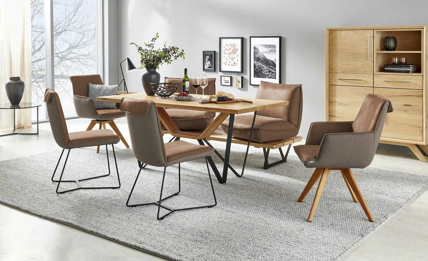 - Mehr zur Ausführung: Innen: Lederbezug, Außen: Flachgewebe in Filz-Optik