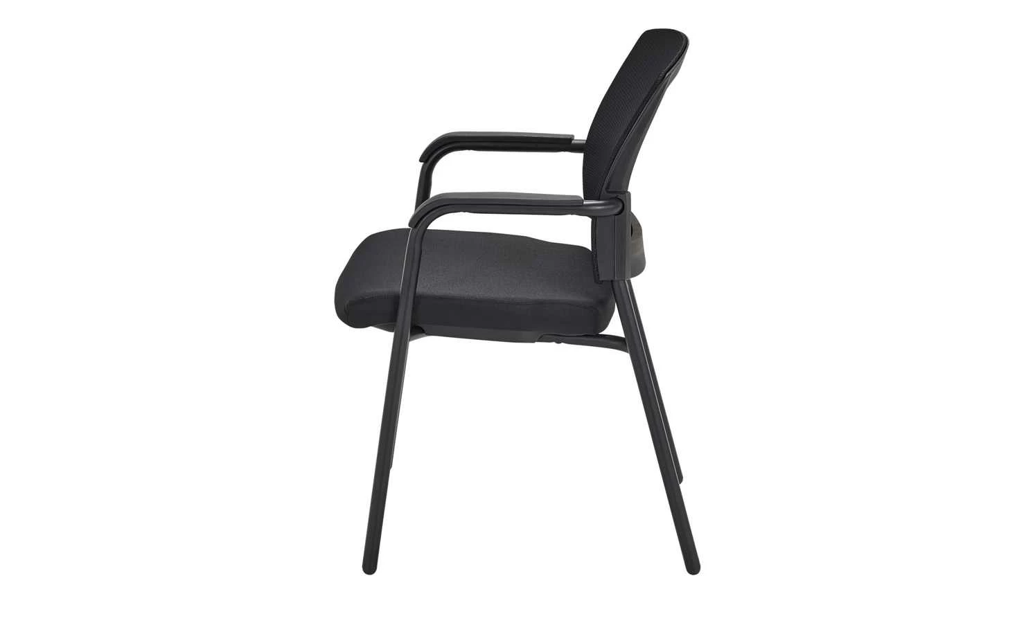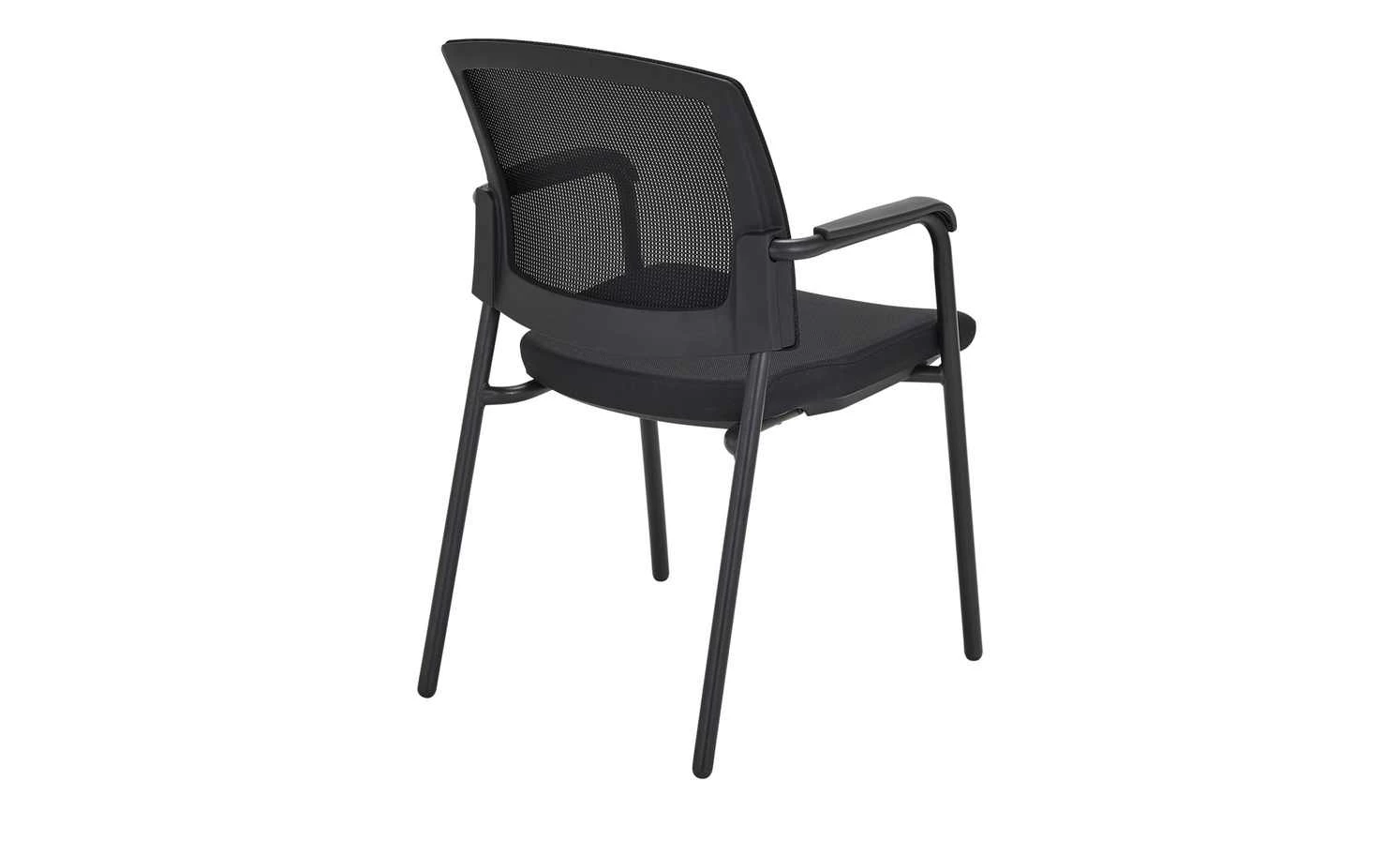 Umme ist ein praktischer Stuhl für Konferenzen und Meetings. Der Sitz ist weich gepolstert und der Rücken mit einem Netzstoff bespannt. Armlehnen zum Ablegen der Arme sind ebenfalls vorhanden. Für den stabilen Stand sorgt ein Gestell aus schwarzem Metall.