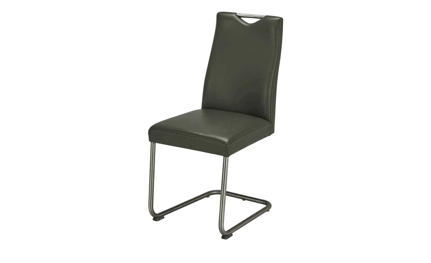 Canto II ist ein bequemer Freischwinger für den Essbereich. Sitz und Rückenlehne sind weich gepolstert, im Sitzbereich befindet sich zusätzlich eine Wellenunterfederung. Am Ende der Rückenlehne befindet sich ein praktischer Griff. Er ist aus Edelstahl und greift somit den Look des Schwinggestells wieder auf. Für den Bezug ist hochwertiges Echtleder verwendet worden.
