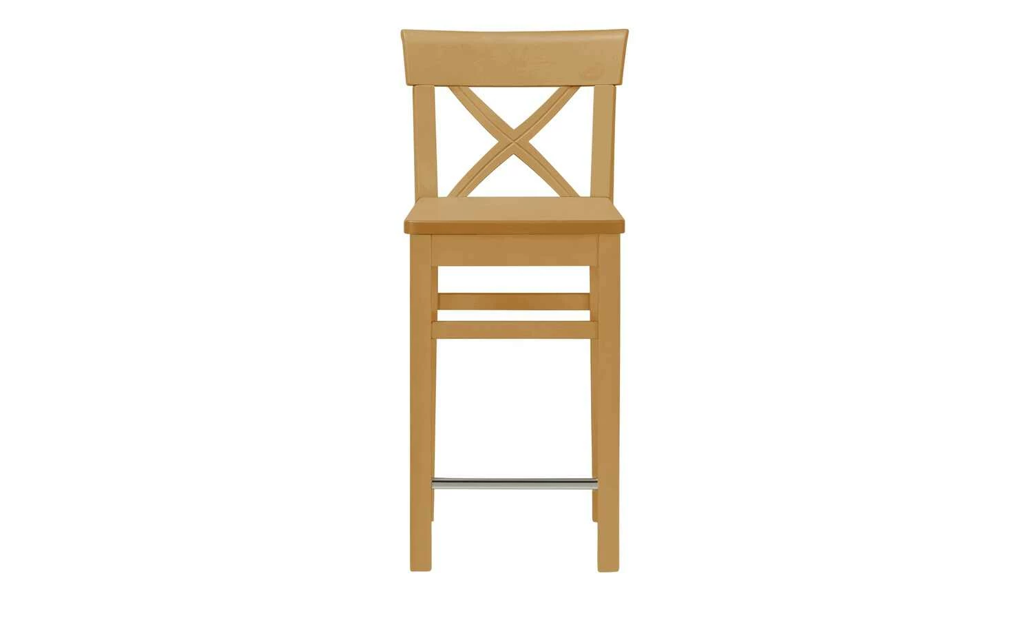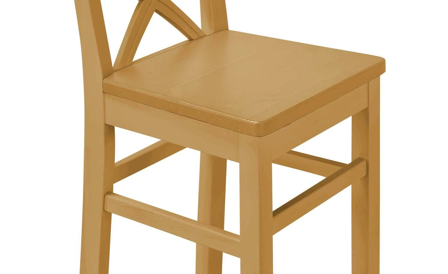 Florian ist die ideale Sitzgelegenheit für Tresen- und Bartische. Der Stuhl hat eine erhöhte Sitzfläche. Sie liegt bei zirka 64,5 Zentimetern. Florian ist komplett aus massiver Kiefer gefertigt. Die Oberfläche ist gebeizt und lackiert. Dadurch hat das Kiefernholz einen warmen Laugenton erhalten. Die holztypische Maserung können Sie dennoch gut erkennen. Sie schimmert durch die Farbe hindurch. Florian ist im Landhausstil gehalten – passend zu den anderen Möbeln der Serie.
