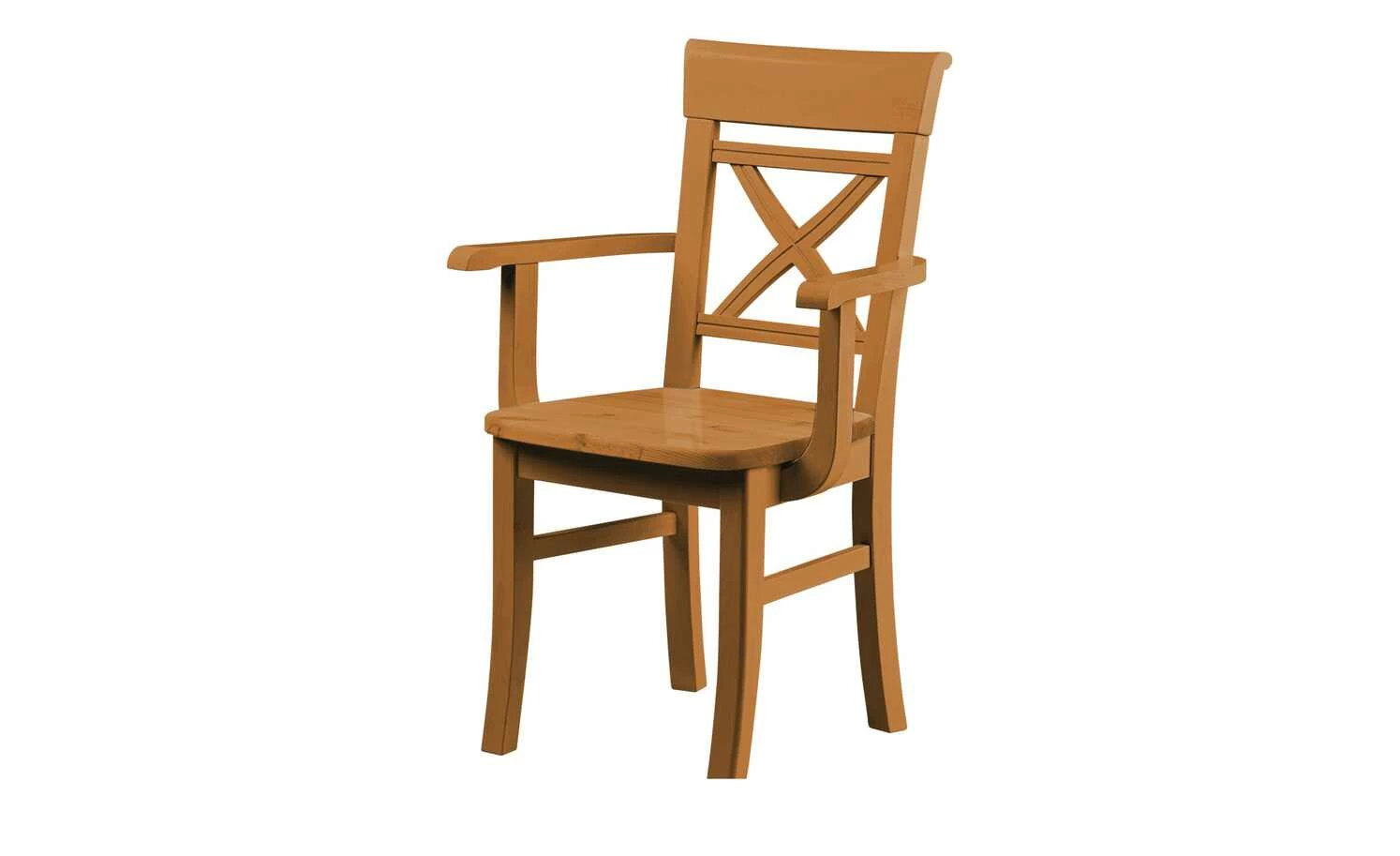 Im Speisezimmer macht sich der Stuhl Florian im Landhausstil besonders gut. Ein Eyecatcher ist das x-förmige Element an der Rückenlehne. Das massive Kiefernholz ist schön gemasert und kommt trotz Lackierung gut zur Geltung. Entscheiden Sie zwischen einem rustikalen Design Ton in Ton, oder dem kontrastreichen Design mit farblich abgesetzter Sitzfläche.
