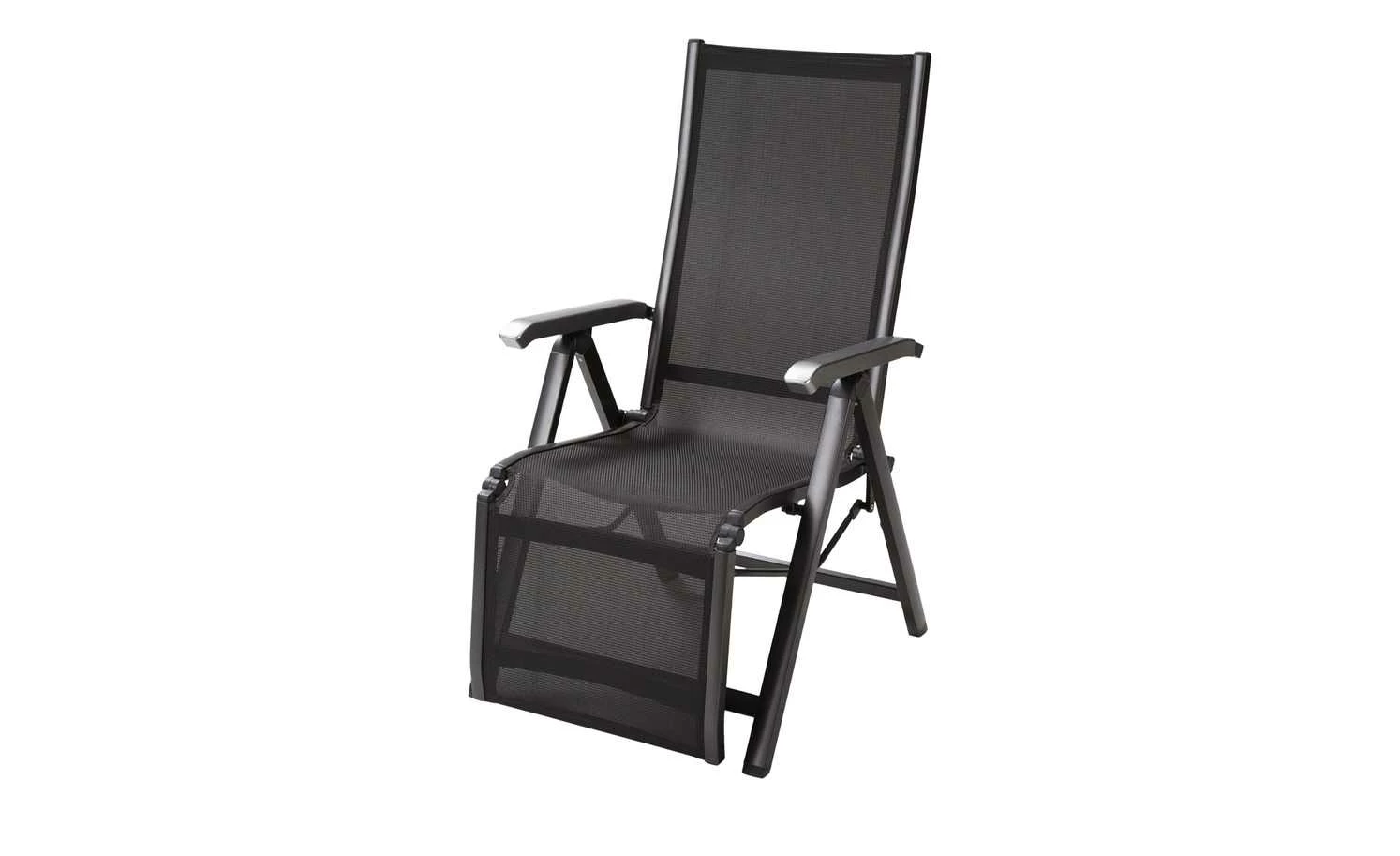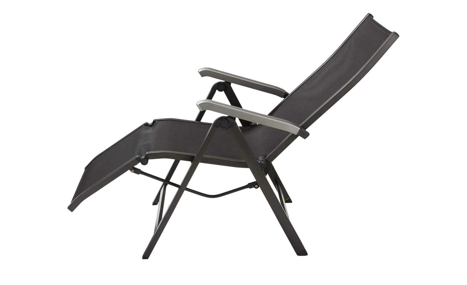 Dieser Sessel lädt zum Entspannen an der frischen Luft ein. In 5-Stufen lässt sich die Rückenlehne nach hinten und der Fußbereich nach oben klappen, so dass Sie eine gemütliche Relaxposition einnehmen können. Das Gestell des Relaxsessels besteht aus wetterbeständigem Aluminium und die bequemen Sitz- und Rückenflächen sind aus strapazierfähigem Textilgewebe gefertigt. Der Garten-Relaxsessel ist belastbar bis 120 kg.
