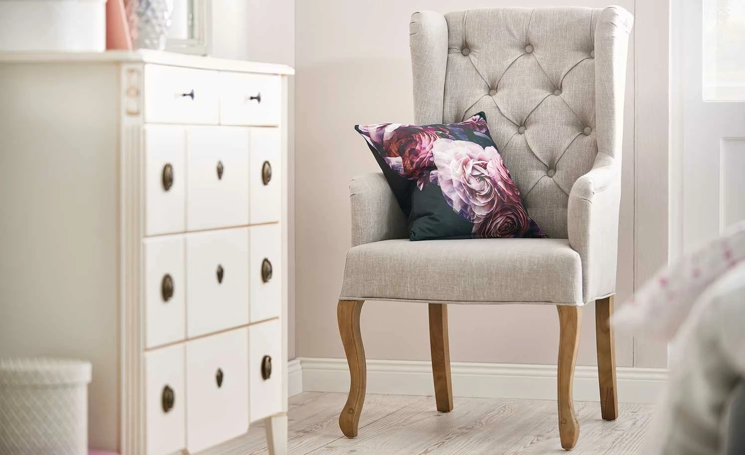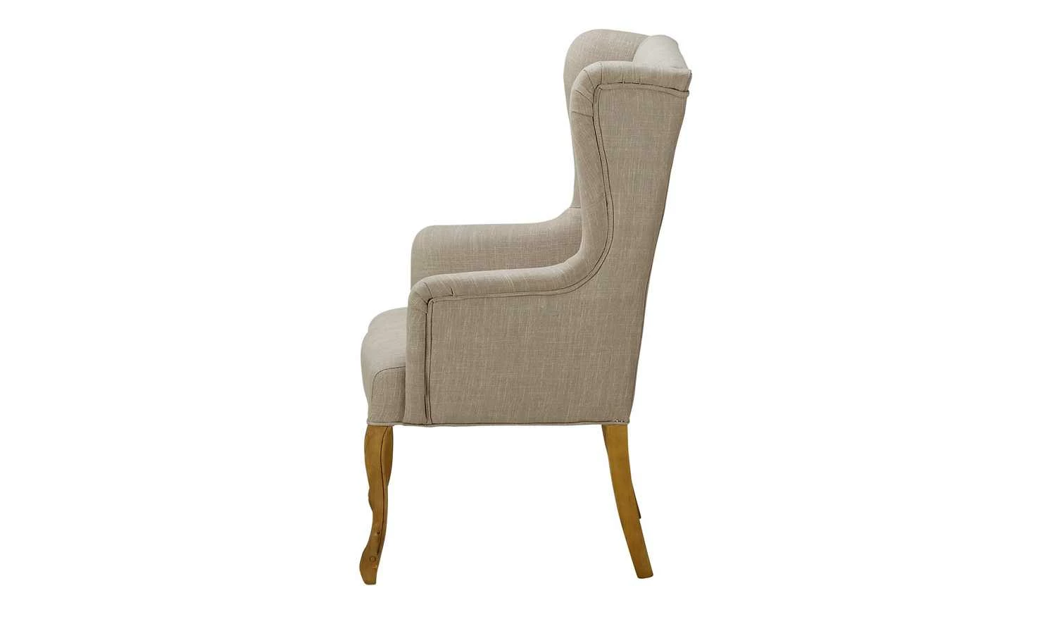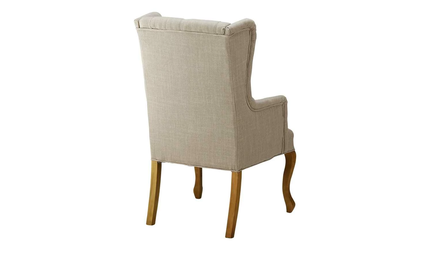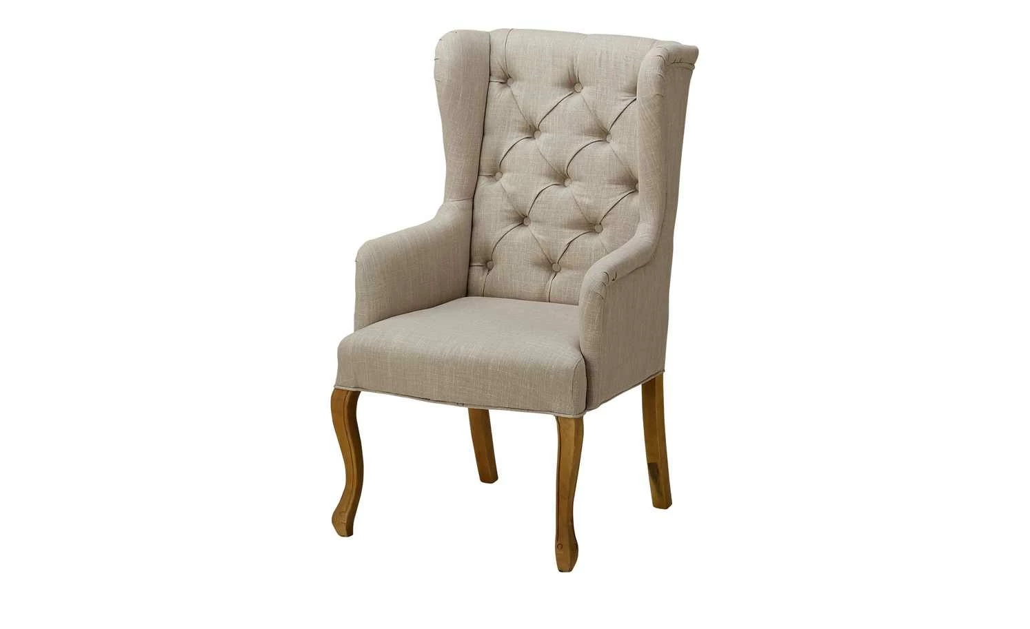 Der Polsterstuhl Heiko erinnert mit der abgesteppten Rückenlehne an den Chesterfield-Stil. Sitzfläche, Rücken- und Armlehnen sind mit einem hellgrauen, melierten Webstoff bezogen. Der dezente Farbton unterstützt die elegante Optik des Stuhls. Die Vintage-Note wird durch die geschwungenen Beine aus massivem Gummibaum wieder aufgegriffen. Die vorderen beiden Beine sind außerdem geschmackvoll verziert. Um Ihnen einen optimalen Komfort zu bieten, hat Heiko weich gepolsterte Armlehnen und Ohren, die zum Anschmiegen einladen. Der Stuhl greift damit alle Vorzüge eines Sessels auf.