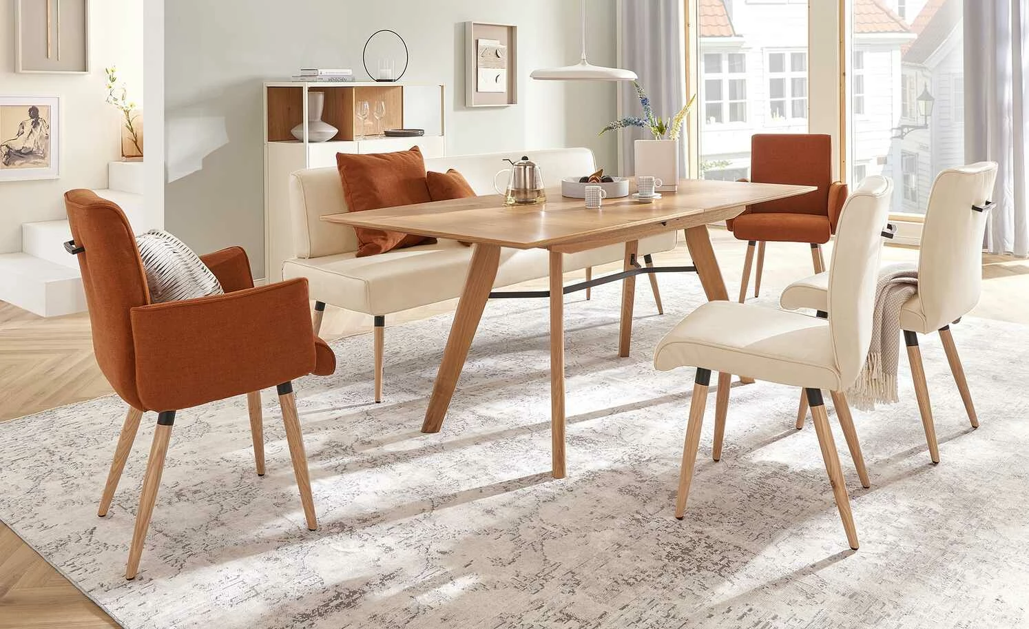 - Mehr zum Material: Gestell in Asteiche natur (massiv) mit Metallhülse in Schwarz strukturiert, Polsteruntergestell aus stabilem Schichtholz, Metallgriff in Schwarz strukturiert