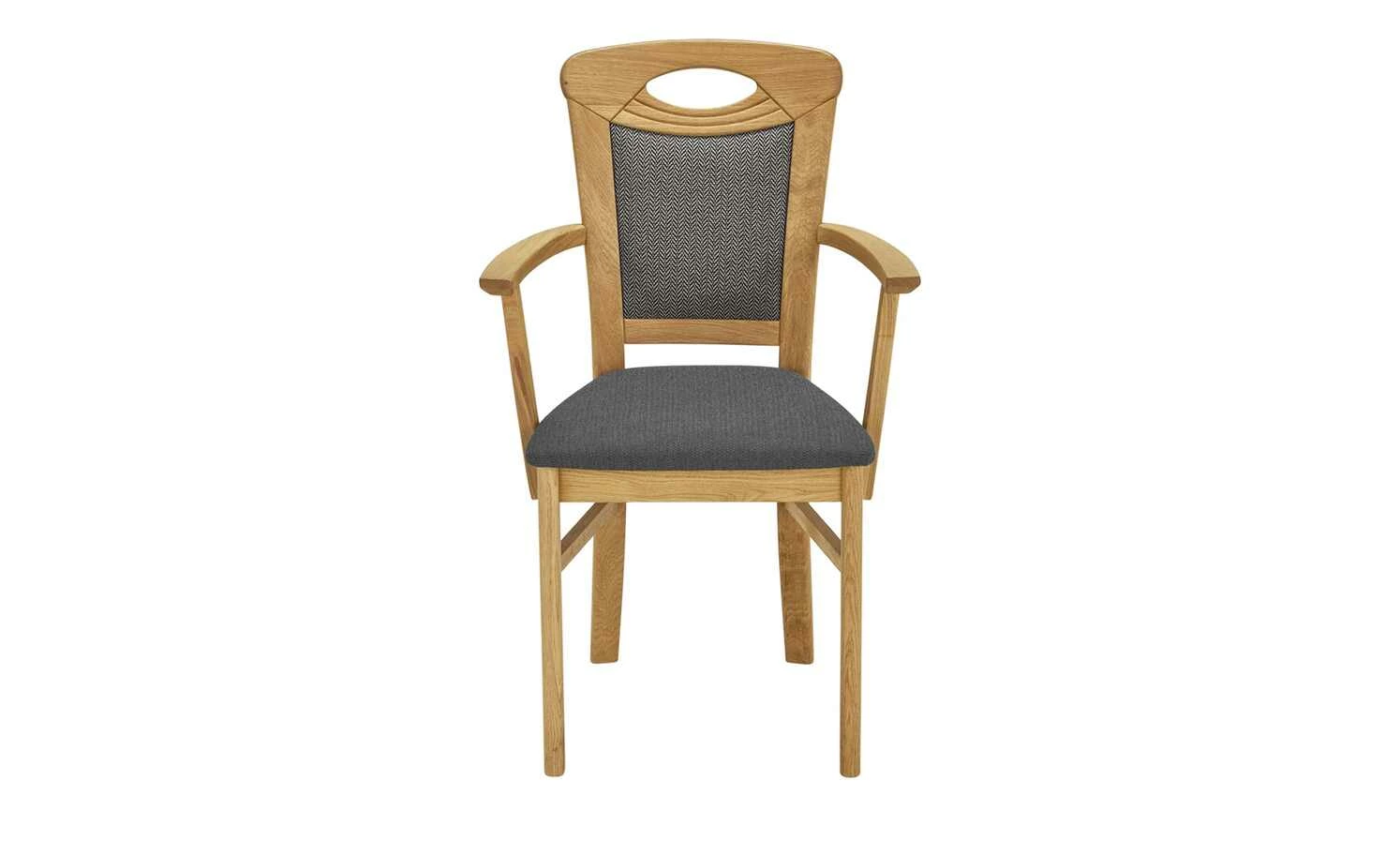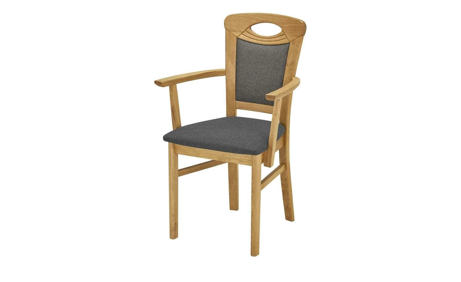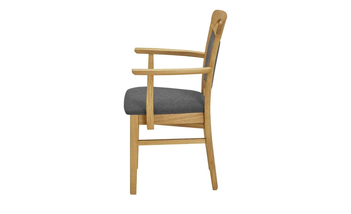 Der Polsterstuhl Multistar verfügt über ein klassisches, elegantes Design. Wahlweise verfügt der Stuhl über Armlehnen. Die hohe Rückenlehne ist am oberen Ende mit einem Griff ausgestattet. Multistar ist aus massiver Eiche gefertigt, die mit einem Öl behandelt worden ist. Sitzfläche und Teile der Rückenlehne sind weich gepolstert und mit Webstoff bezogen.