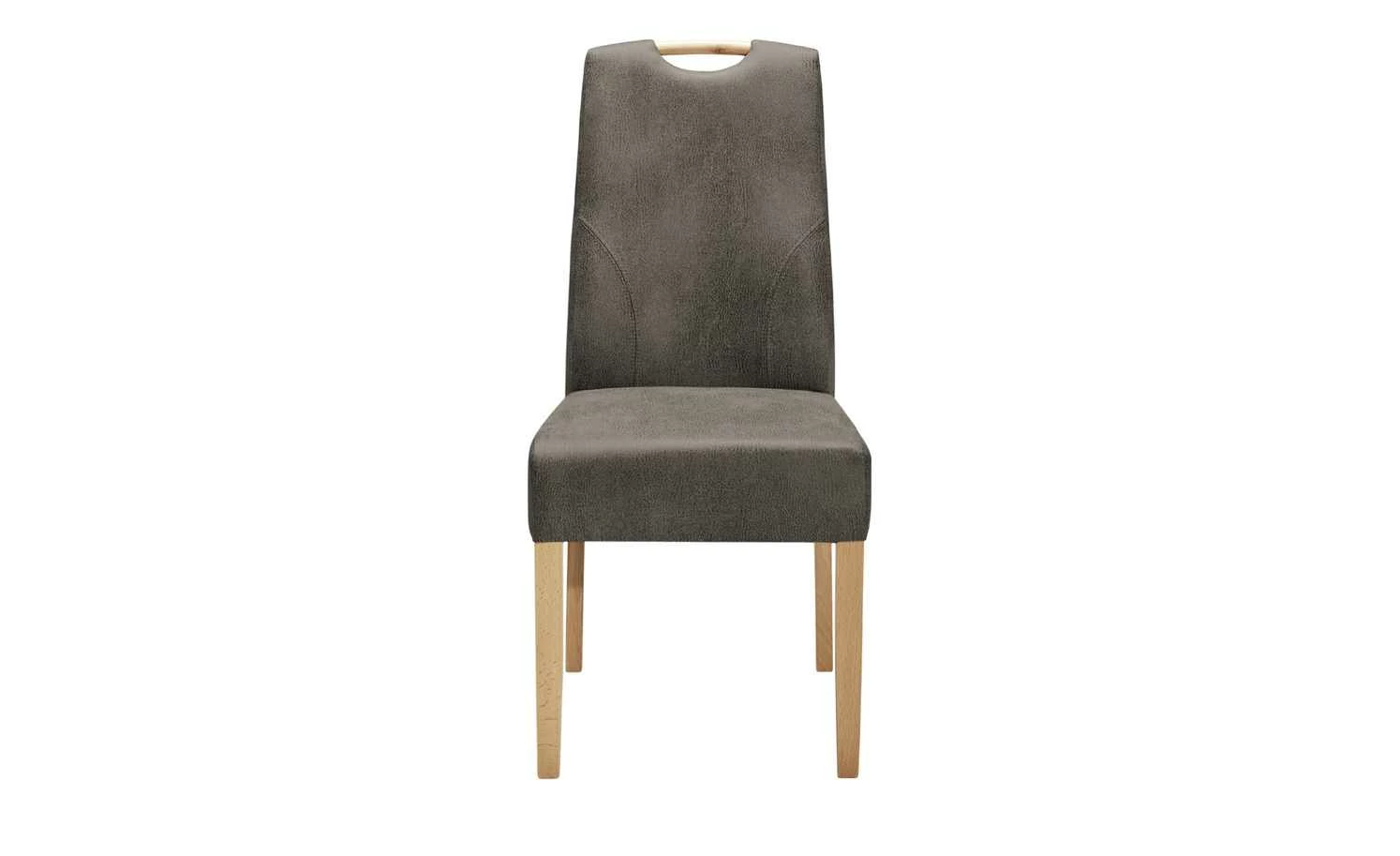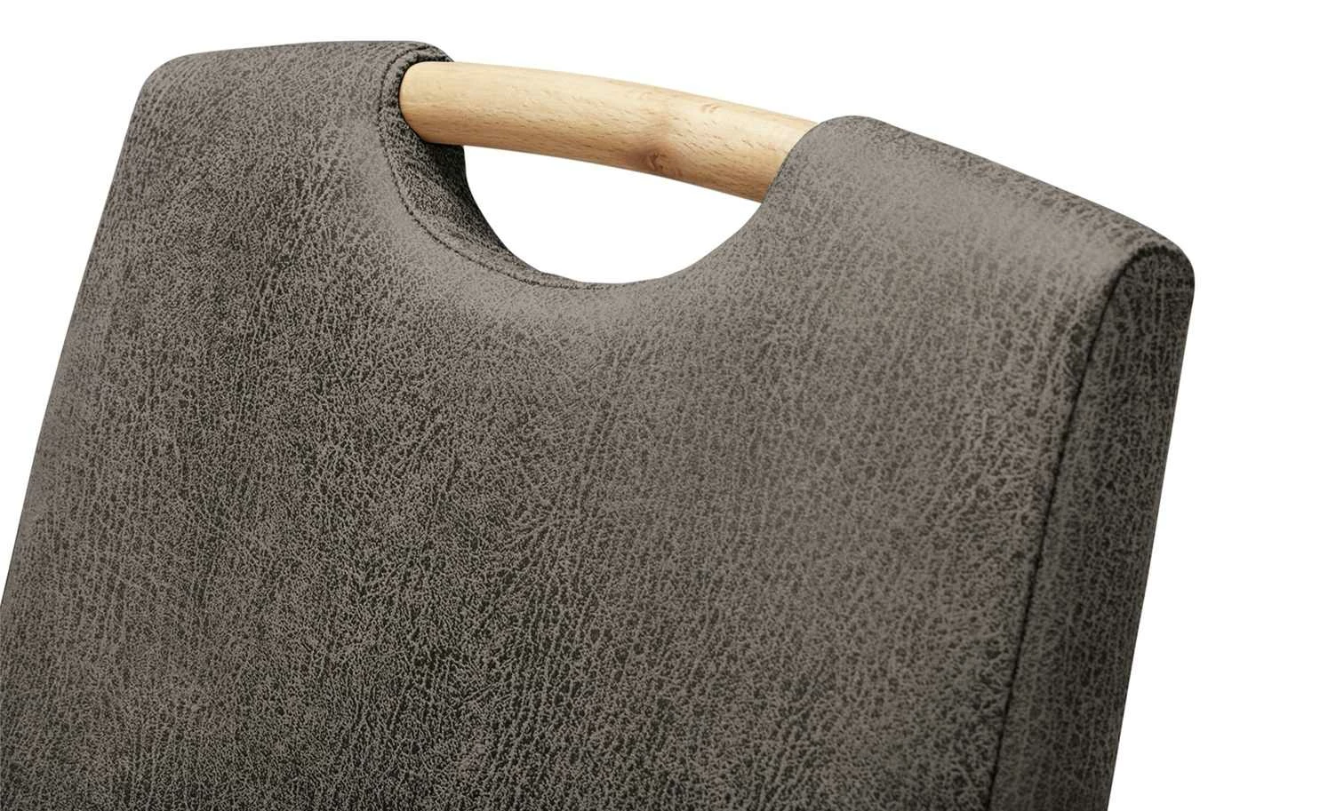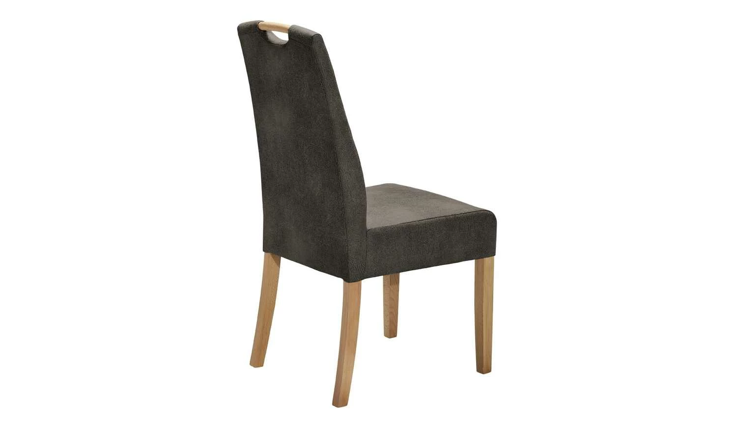 Ein bequemes Sitzmöbel für Essecke oder Speisezimmer ist dieser Stuhl. Für genügend Stabilität sorgt das Stuhlgestell aus Massivholz. Das Holzdekor der Beine sorgt außerdem für einen natürlichen Kontrast zum Bezugsstoff von Sitz- und Rückenfläche. Dieser ist aus strapazierfähigem Polyester. Besonders schön ist die Leder-Optik des Stoffes, die den Stuhl optisch bereichert. Damit Sie auch bei Mittag oder Abendessen gut sitzen, ist der Stuhl mit einer Gurtfederung ausgestattet.