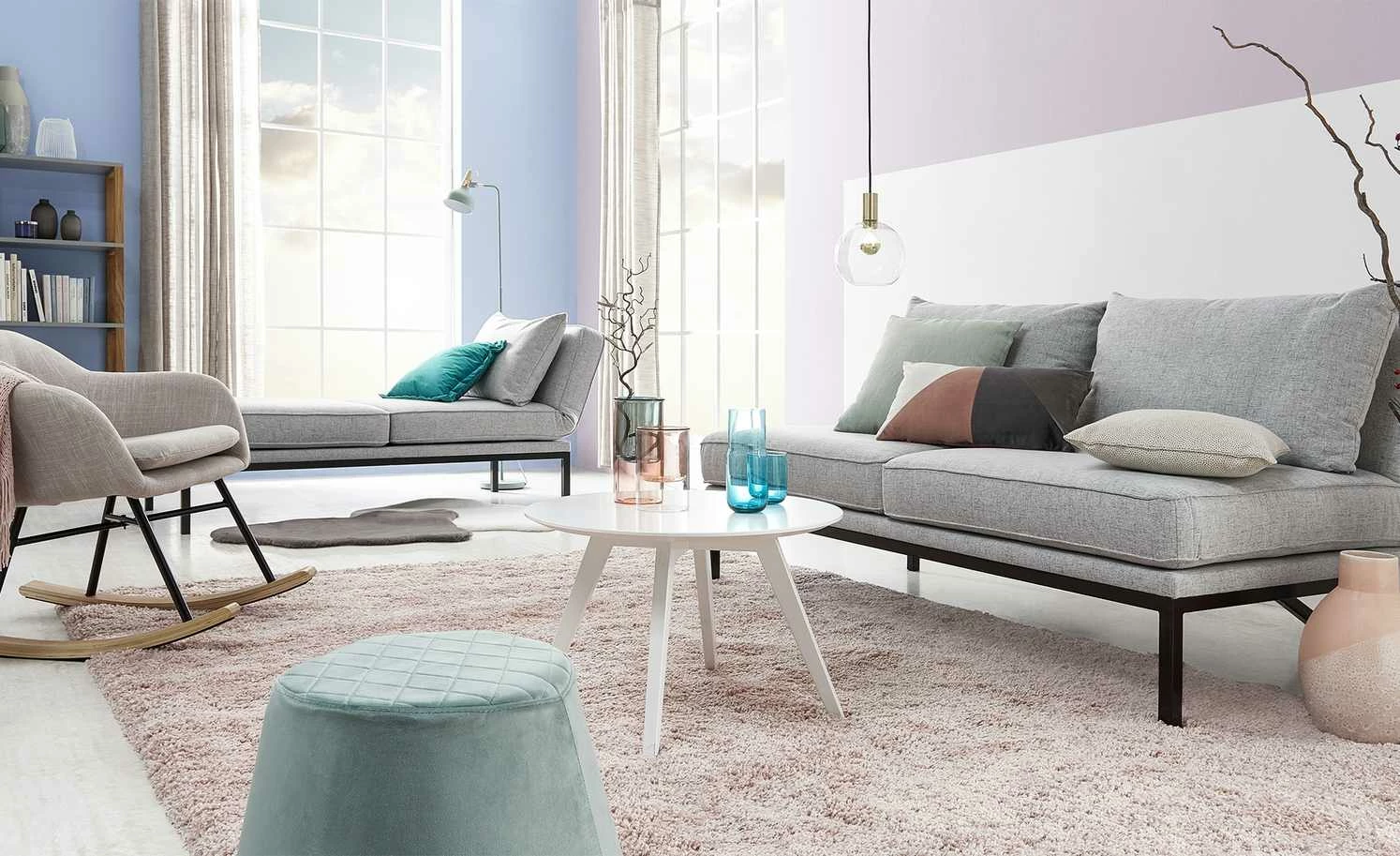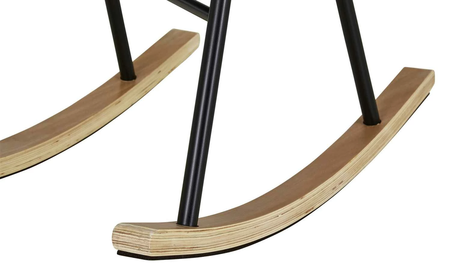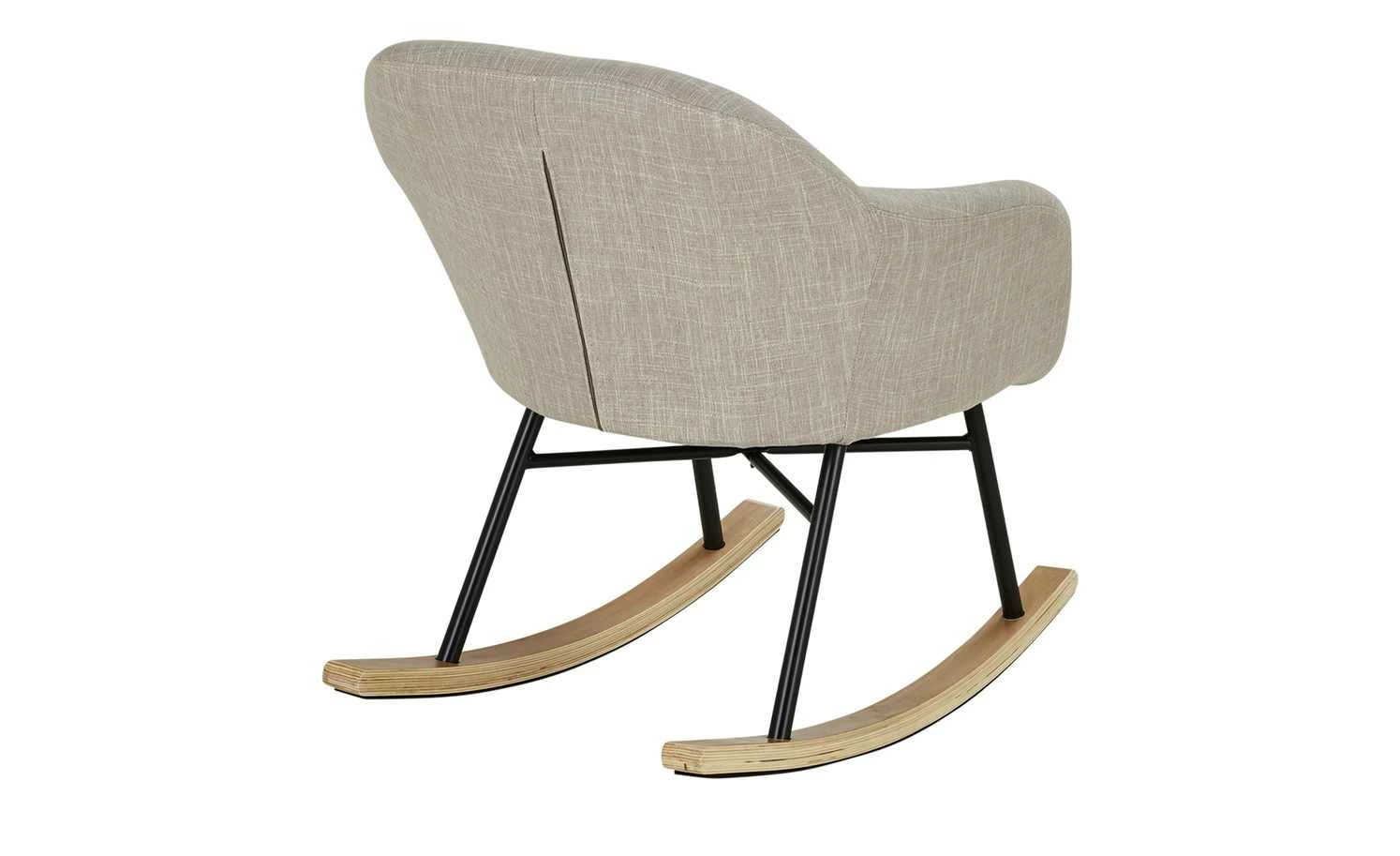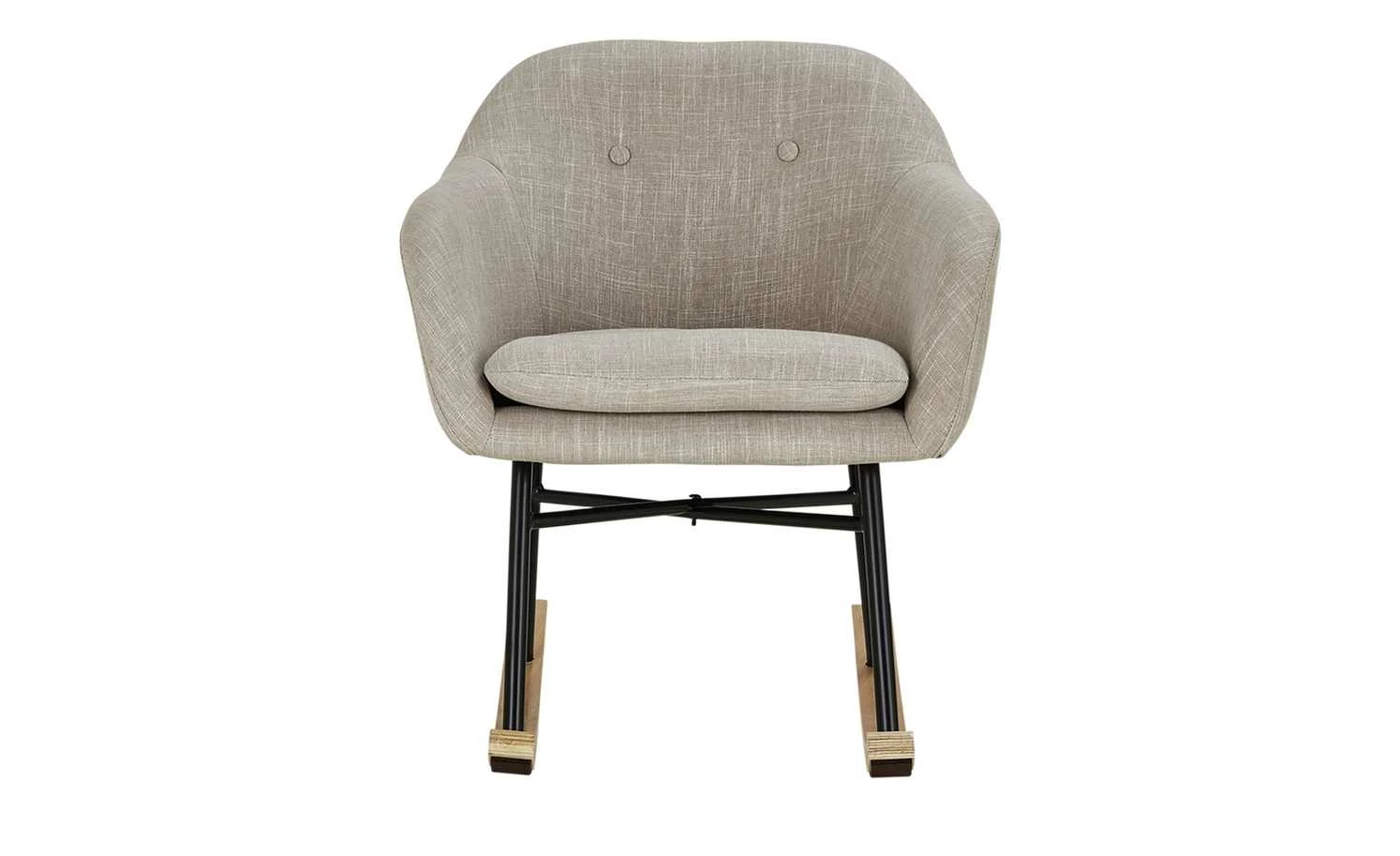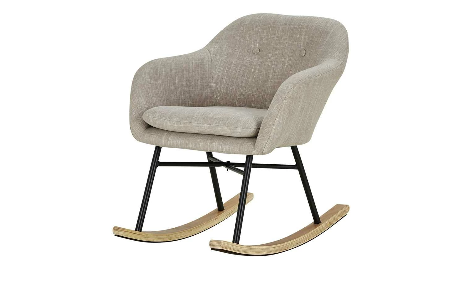 Bequem Sitzen und beim Schaukeln entspannen – das können Sie mit dem Schaukelsessel Rocco. Die Sitzschale ist weich gepolstert und zusätzlich mit einem weichen Sitzkissen ausgestattet. Rückenlehne und beide Armlehnen haben eine angenehme, bequeme Höhe. Für den Bezug ist ein dekorativer grau melierter Webstoff verwendet worden. Das Gestell besteht aus stabilem Metall und hat einen matten schwarzen Farbton. Beide Kufen sind mit Birkenholz furniert und haben Filzgleiter auf der Unterseite. Sie sollen den Boden vor Abnutzungen schützen.