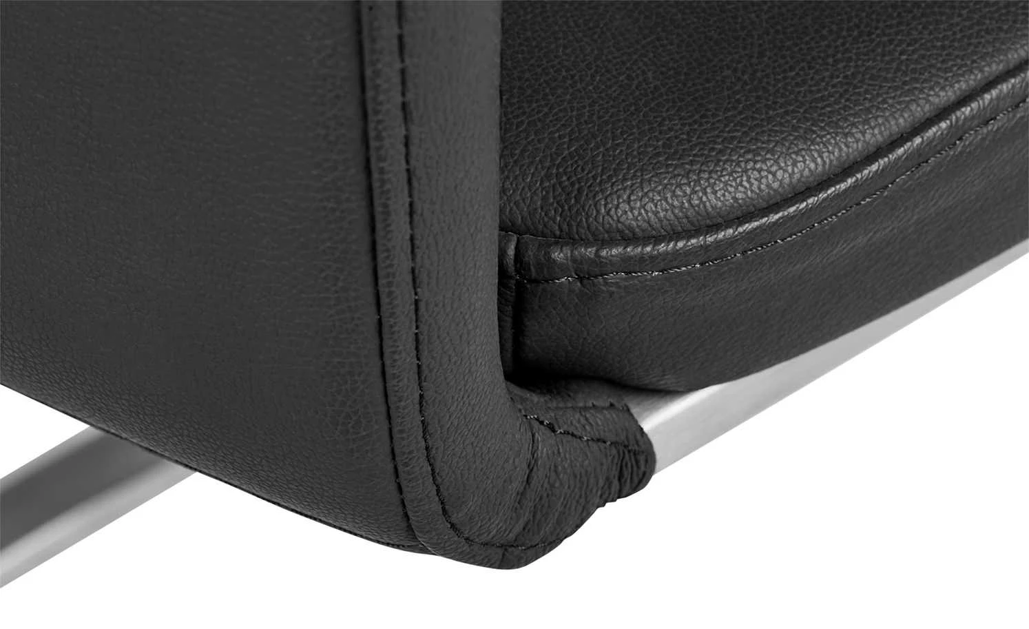 Sanft geformte Linien und ein schlankes, reduziertes Design verleihen dem Schwingstuhl Mike Stil und Leichtigkeit. Die geschwungene Rückenlehne, hochwertige Polsterung sowie die harmonisch abgerundete Sitzkante gewährleisten einen bequemen Sitzkomfort. Der Bezug ist aus hochwertigem und strapazierfähigem Kunstleder. Das Gestell ist aus einem Flachrohr aus Edelstahl. Die matt gebürstete Oberfläche gibt dem Stuhl den letzten Schliff.