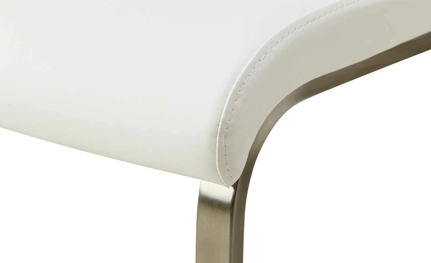 Sanft geformte Linien und ein schlankes, reduziertes Design verleihen dem Schwingstuhl Mike Stil und Leichtigkeit. Die geschwungene Rückenlehne, hochwertige Polsterung sowie die harmonisch abgerundete Sitzkante gewährleisten einen bequemen Sitzkomfort. Der Bezug ist aus hochwertigem und strapazierfähigem Kunstleder. Das Gestell ist aus einem Flachrohr aus Edelstahl. Die matt gebürstete Oberfläche gibt dem Stuhl den letzten Schliff.
