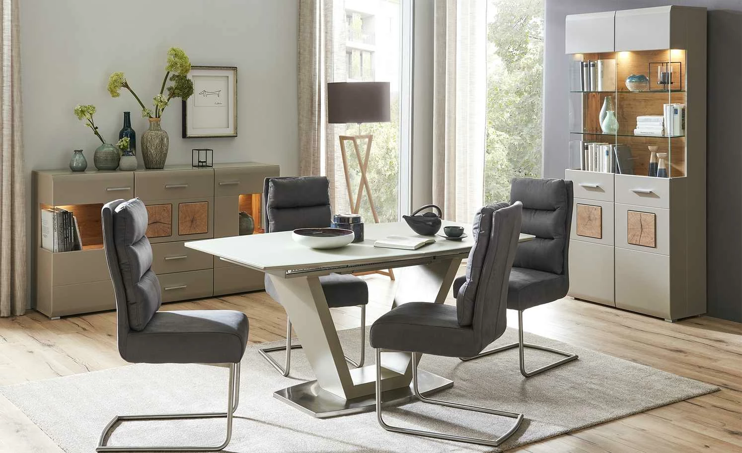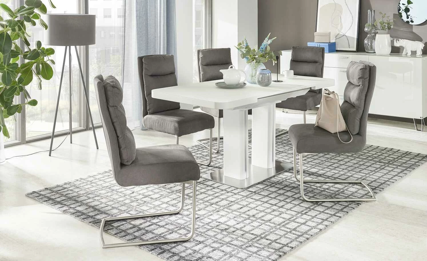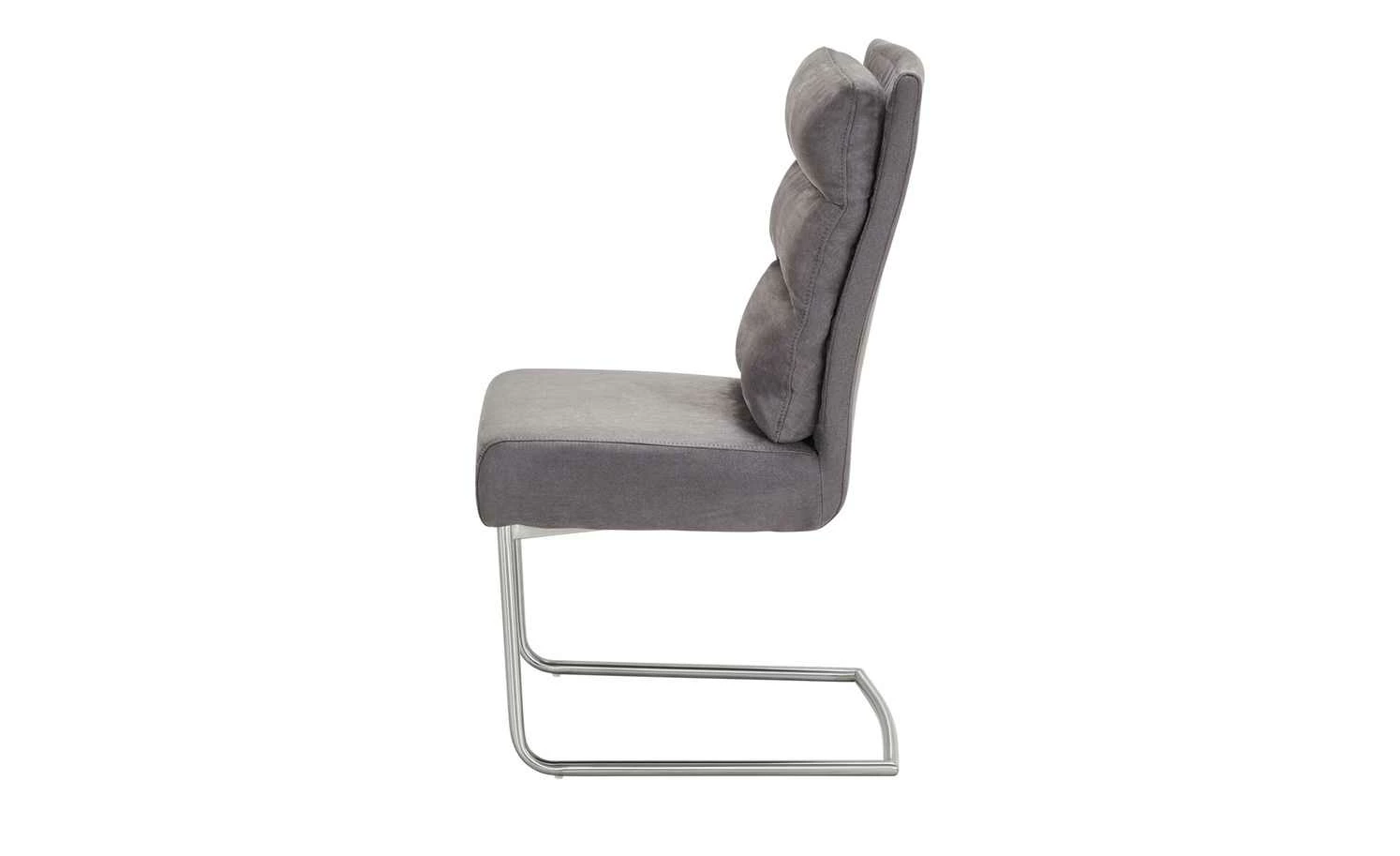 Fast so bequem wie ein Sessel ist der Schwingstuhl Tamme. Er ist im Sitzbereich mit einem hochwertigen Taschenfederkern ausgestattet, damit Sie es lange komfortabel haben. Das abgesteppte Rückenkissen ist mit Schaumstoff gepolstert und fällt sofort ins Auge. Sitz- und Rückenfläche sind komplett mit Mikrofaser bezogen. Der Bezug hat eine leichte Lederoptik im Used-Look und einen ansprechenden grauen Farbton. Das Gestell ist aus Metall, die Oberfläche wurde gebürstet.
