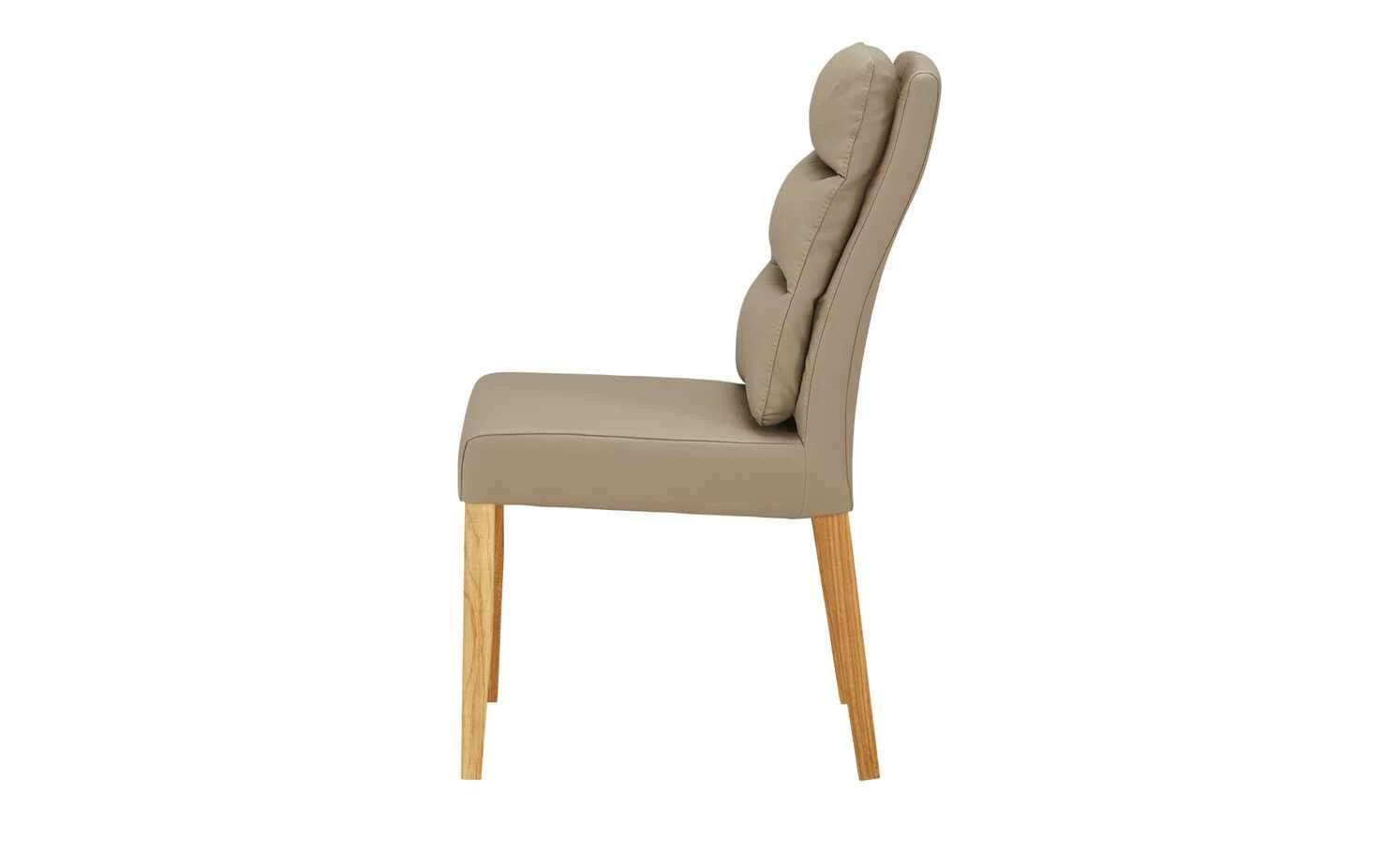 Der Stuhl Tamix 1 von smart fällt durch seine extra dicke Polsterung auf. Vor allem das Rückenkissen, welches vorne an der Rückenlehne angebracht ist, fällt durch seine fluffige Form auf. Perfekt, um sich gemütlich anzulehnen. Die Stuhlbeine bestehen aus Massivholz.