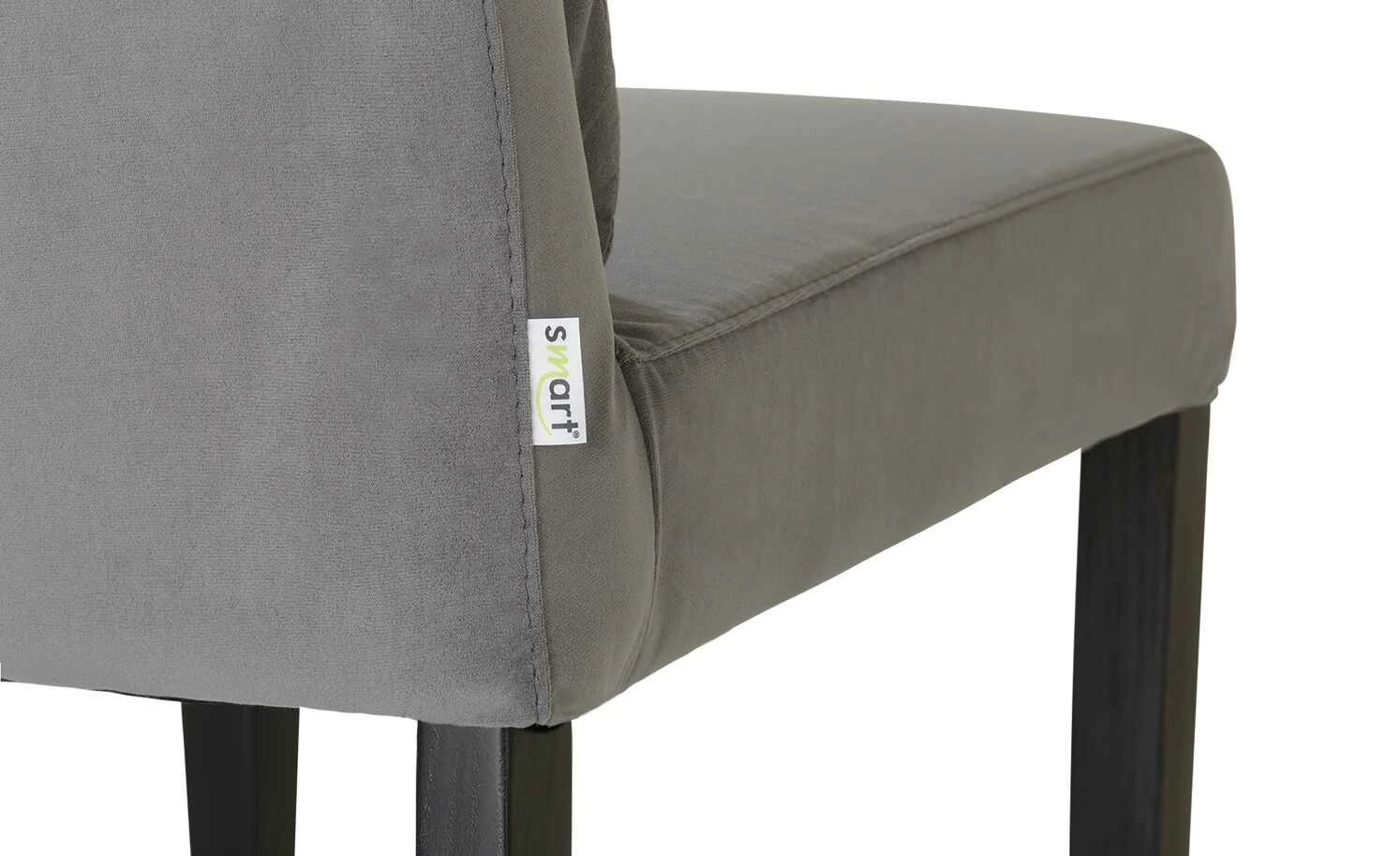 Der Stuhl Tamix 1 von smart fällt durch seine extra dicke Polsterung auf. Vor allem das Rückenkissen, welches vorne an der Rückenlehne angebracht ist, fällt durch seine fluffige Form auf. Perfekt, um sich gemütlich anzulehnen. Die Stuhlbeine bestehen aus Massivholz.