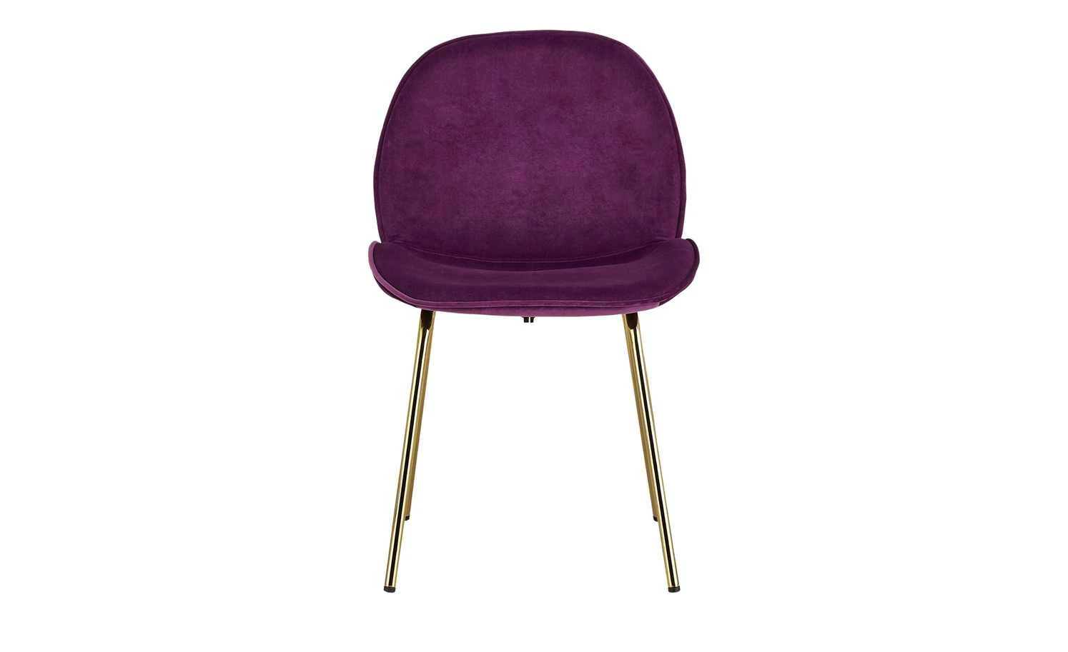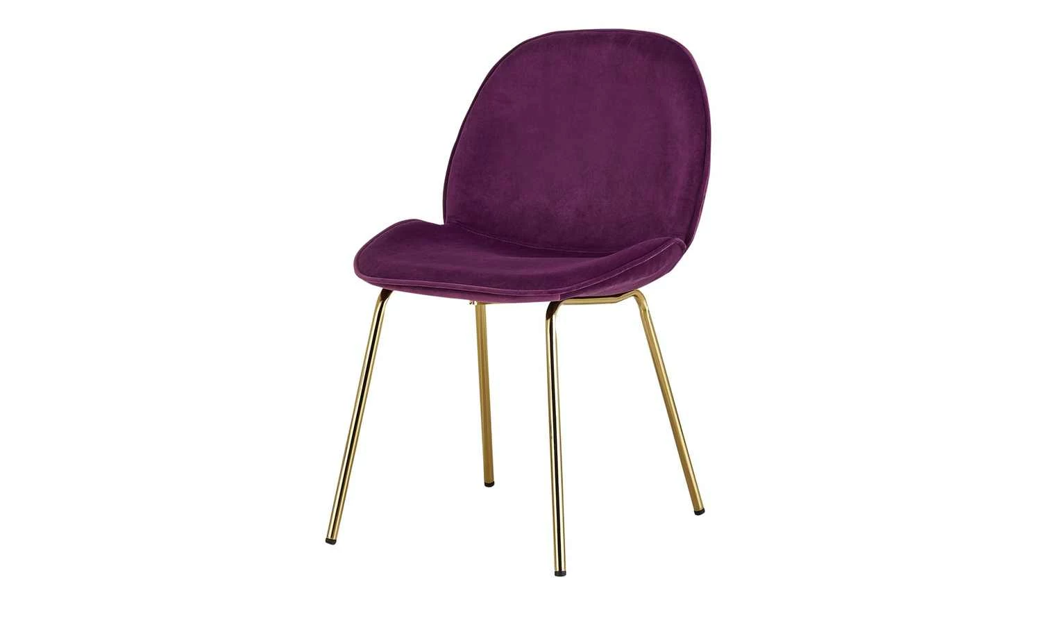 Mit seinem eleganten Look veredelt dieser Stuhl Wohn-, Ess- oder Arbeitszimmer im Handumdrehen. Blickfang sind die goldfarbenen, glänzenden Metallfüße. Sie geben dem Stuhl einen stabilen Stand und setzen einen tollen Kontrast zur komfortablen Sitzschale. Der samtig weiche Bezug ist mit einer umlaufenden Kedernaht verziert und wird gekonnt akzentuiert.