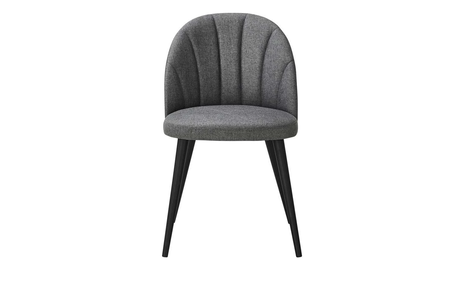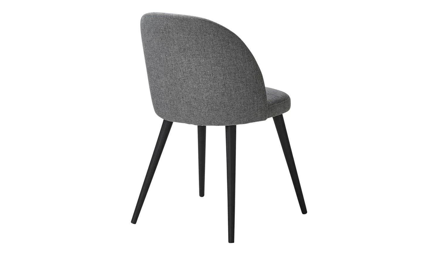 Der Polsterstuhl Domingo fügt sich in nahezu jeden Einrichtungsstil problemlos ein. Der dunkelgraue Bezug aus strapazierfähigem Webstoff ist an der Rückenlehne längs gesteppt. In Kombination mit den langen schwarzen Massivholzfüßen aus Buchenholz wirkt der Stuhl Domingo schlicht und modern zugleich. Für hohen Sitzkomfort sorgt die Schaumstoffpolsterung im Sitz- und Rückenbereich.
