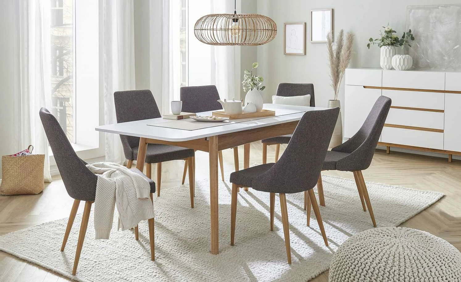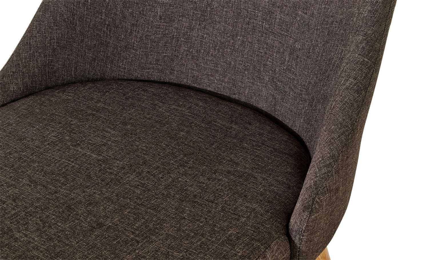 Ob beim Mittagessen oder Spieleabend mit Freunden. Auf dem Stuhl Howard sitzen Sie bequem. Möglich ist das durch den schön geformten Rücken und die komfortable Polsterung mit Schaumstoff. Sitz- und Rückenfläche sind mit einem melierten Polyesterstoff in Dunkelgrau bezogen. Das Stuhlgestell ist aus Metall und in Buchenoptik bedruckt.