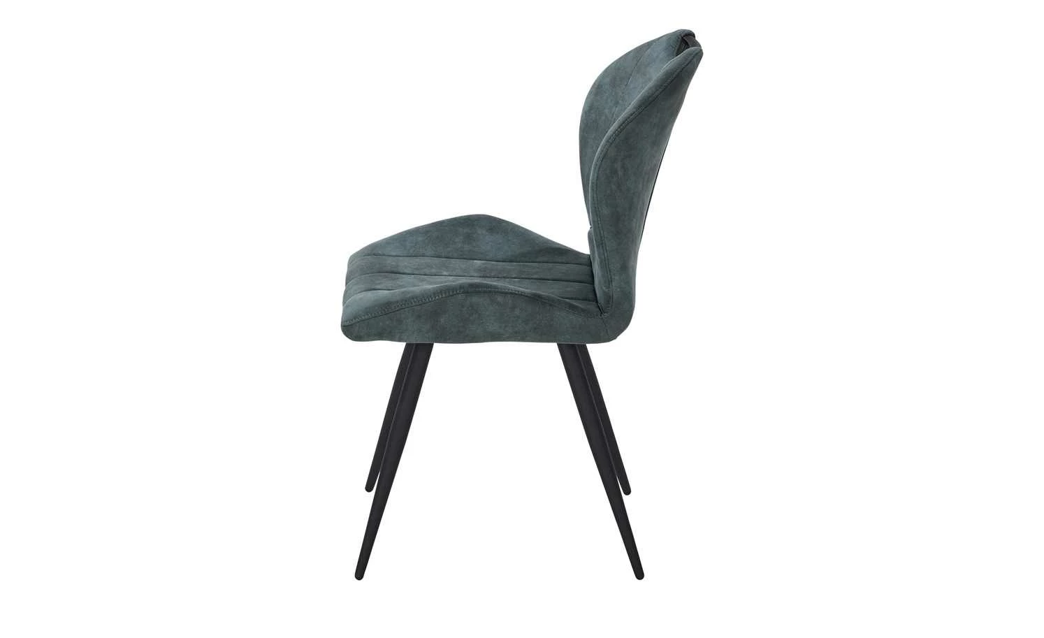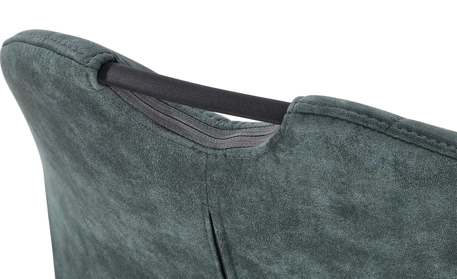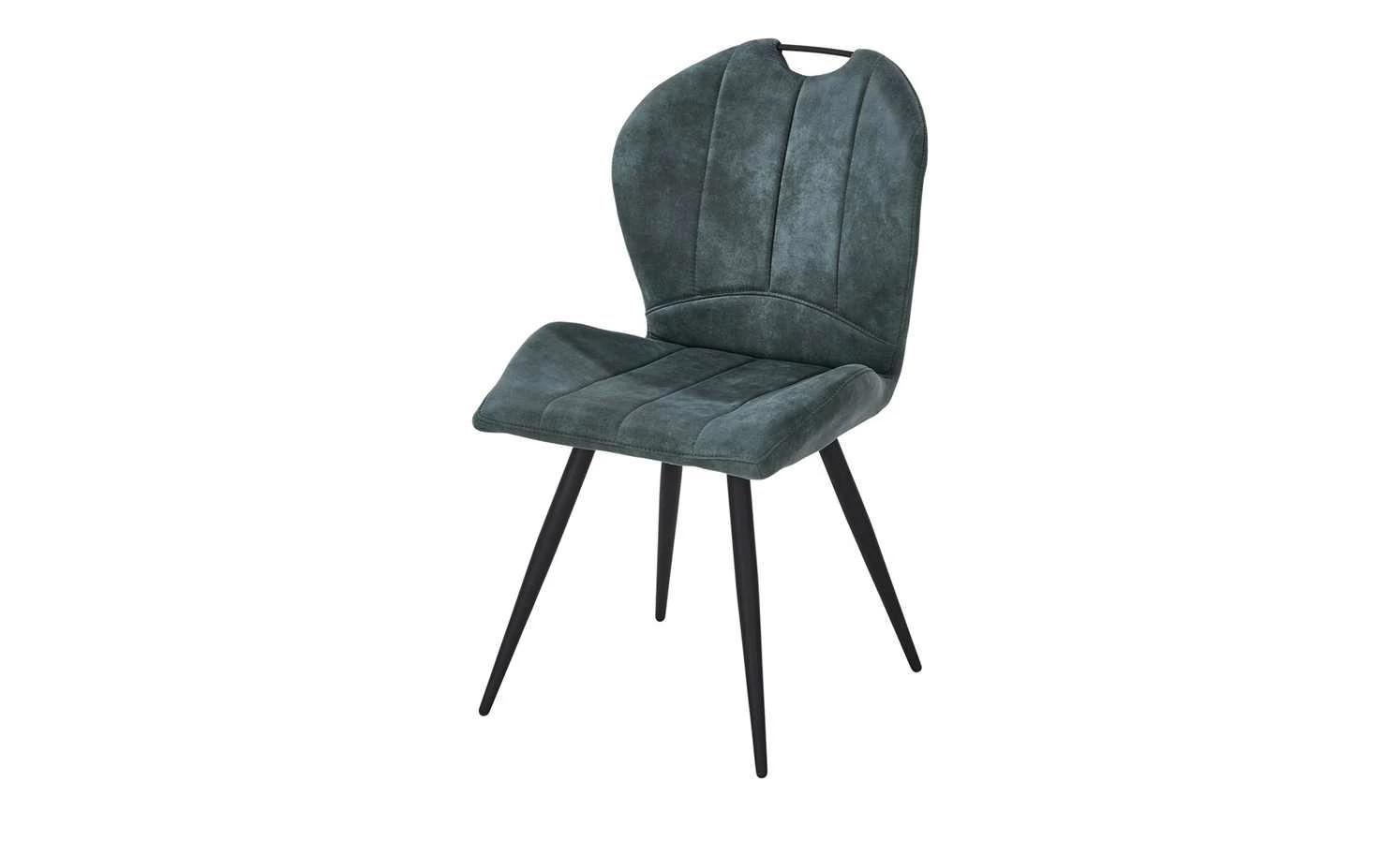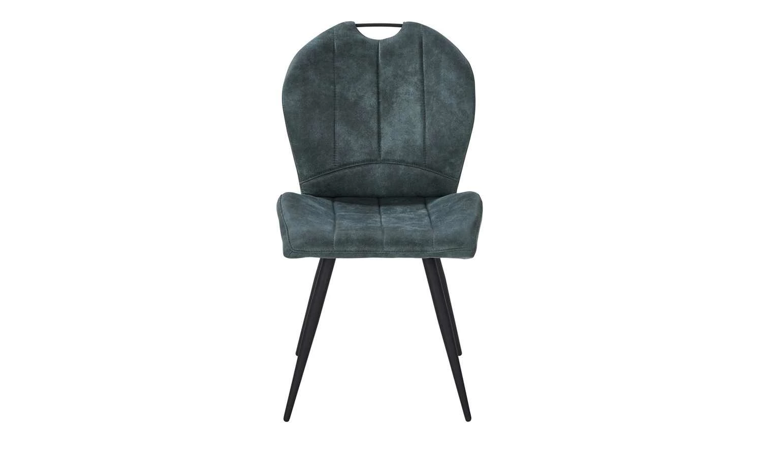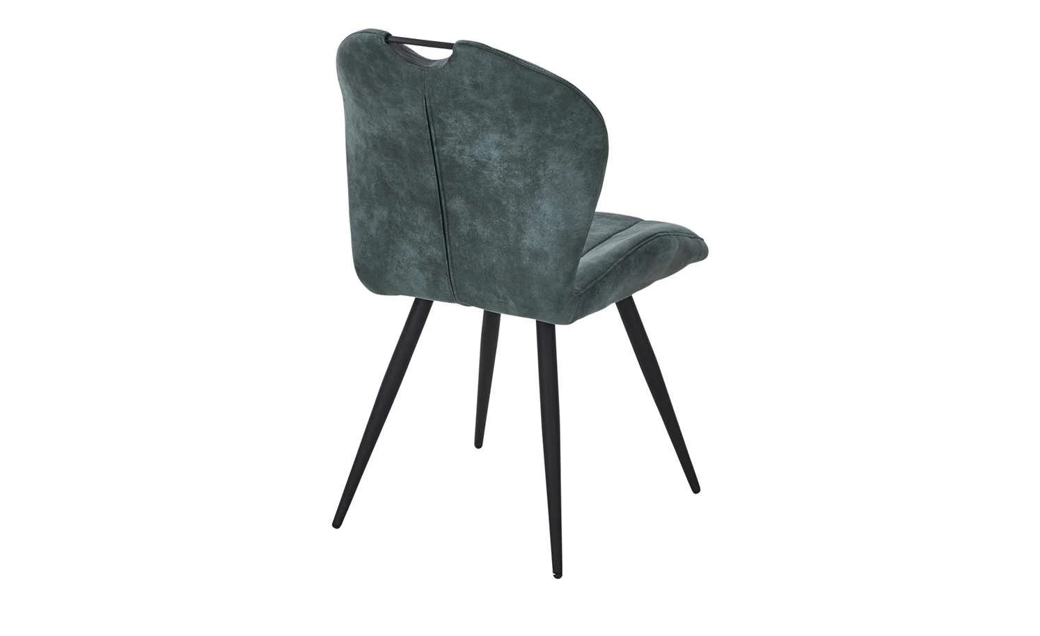 Mit seinem Industrial-Design ist der Stuhl Ingo ein optisches Highlight für den Essbereich. Sitz und Rücken sind mit einer grüngrauen Mikrofaser bezogen. Sie hat eine Optik, die an Kunstleder erinnert und mit angesagten Used-Effekten versehen ist. Sitz und Vorderseite der Lehne sind zusätzlich mit Ziersteppungen versehen. Der gesamte Sitzbereich ist ergonomisch vorgeformt und weich gepolstert. Die schwarzen, schlanken Beine sind aus pulverbeschichtetem Metall.