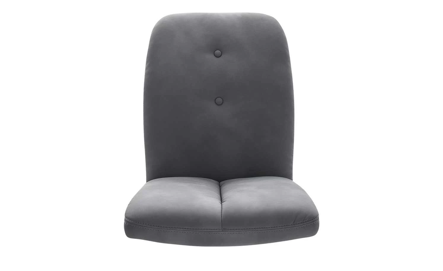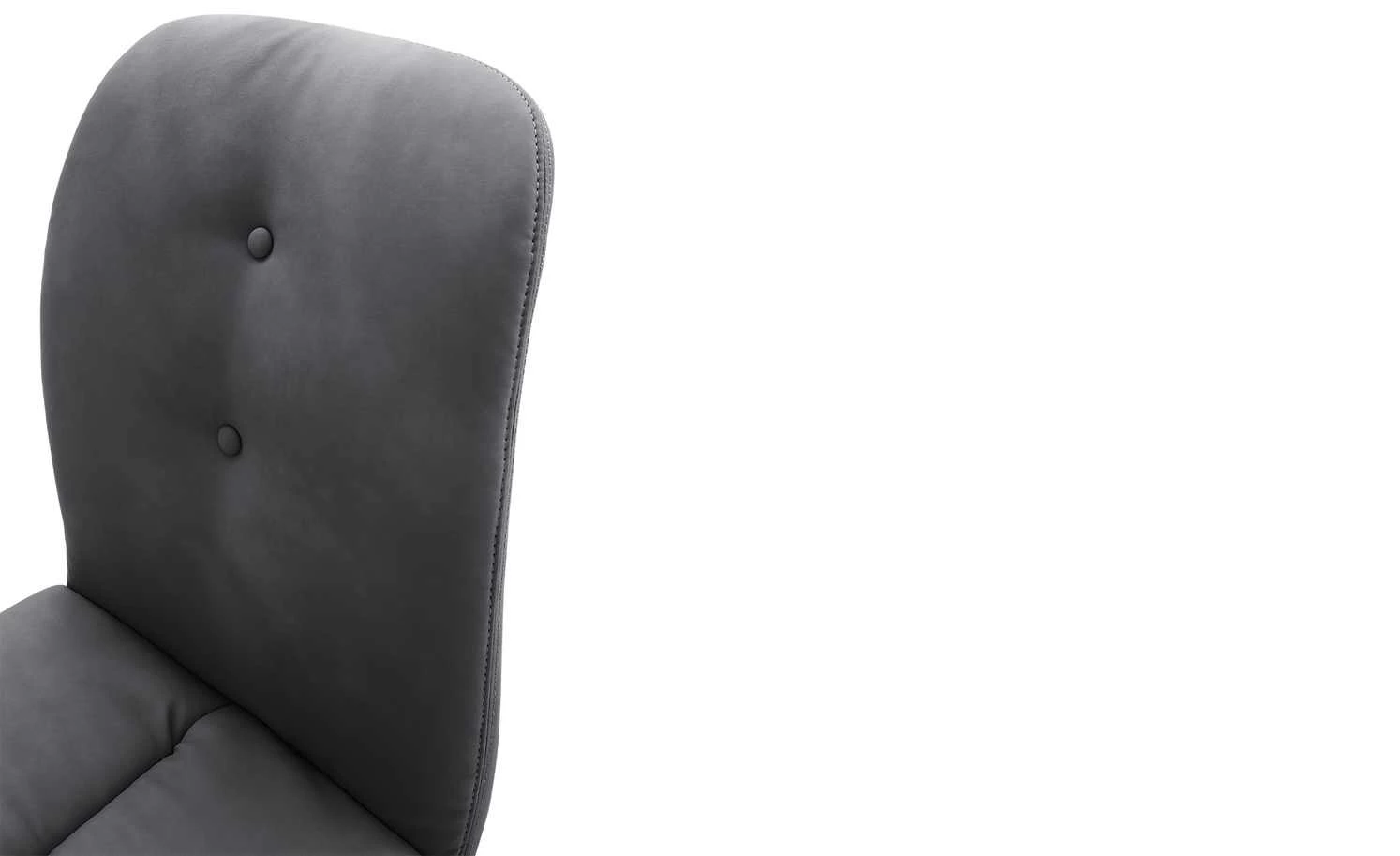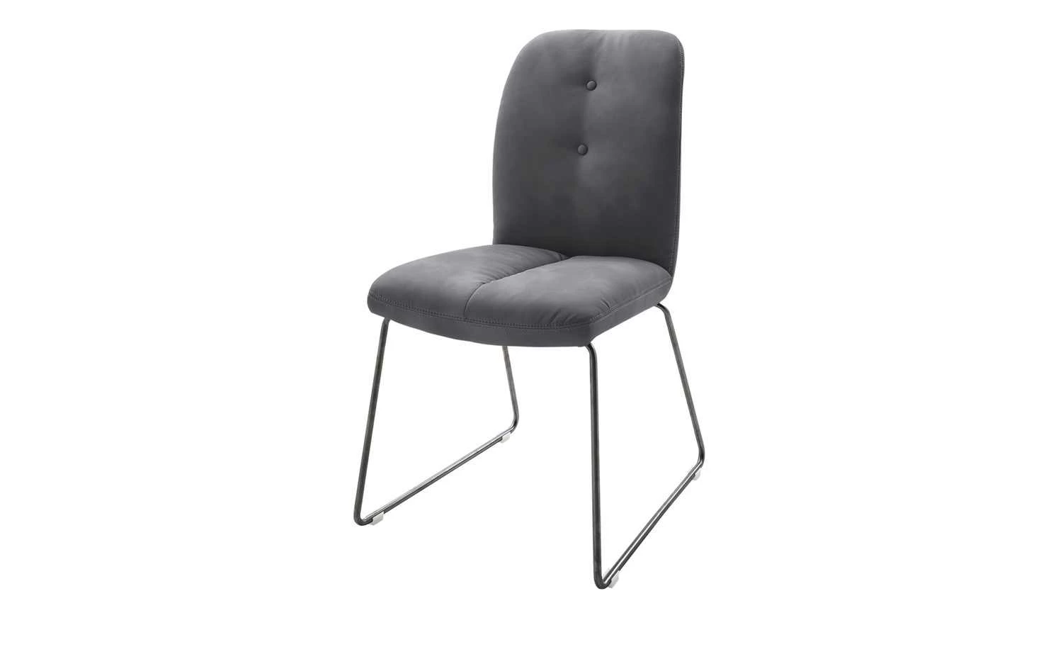 Sitzkomfort sollte auch bei Tisch selbstverständlich sein. Deshalb empfehlen wir den Kufenstuhl Sema. Sitzfläche und Rückenlehne sind dick mit Schaumstoff gepolstert. Die Rücklehne hat eine angenehme Höhe, die Armlehnen sind leicht schräg geformt, so dass Sie die Arme noch bequemer abstützen können. Die komplette Sitzschale ist mit Mikrofaser bezogen. Sie fühlt sich etwas samtig an und hat eine leichte Oberflächenstruktur. Auf der Vorderseite des Stuhlrückens befinden sich zwei dekorative Zierknöpfe; die Sitzfläche ist abgesteppt. Für einen guten Stand sorgt das Stuhlgestell, das aus zwei Metallkufen besteht.
