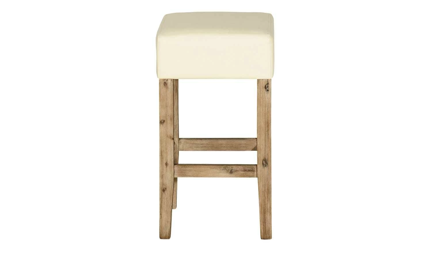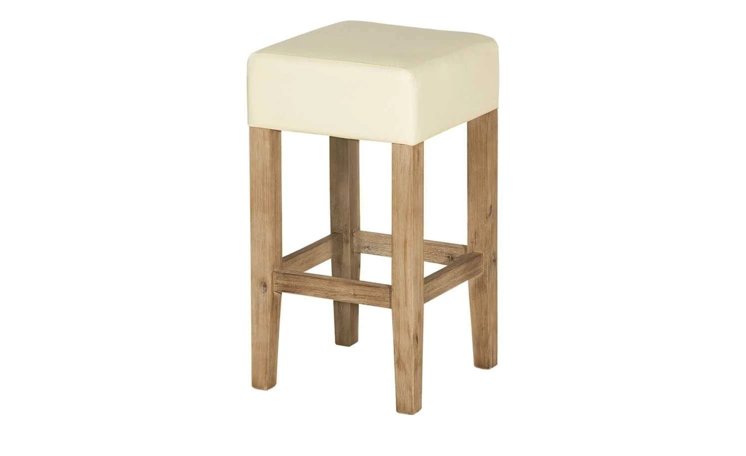 Passend zum Tresentisch ist der Barhocker Sahara, kann aber auch gut mit anderen Bartischen kombiniert werden. Das Gestell ist aus Akazienmassivholz und sorgt für einen sicheren und festen Stand. Die Sitzfläche ist mit einem Bezug aus Kunstleder ausgestattet. Dieses ist robuster und pflegeleichter als Echtleder. Der helle Cremeton passt gut zum gebürsteten und gebeizten Gestell. Für Komfort beim Sitzen wurde die Sitzfläche weich mit Schaumstoff gepolstert.