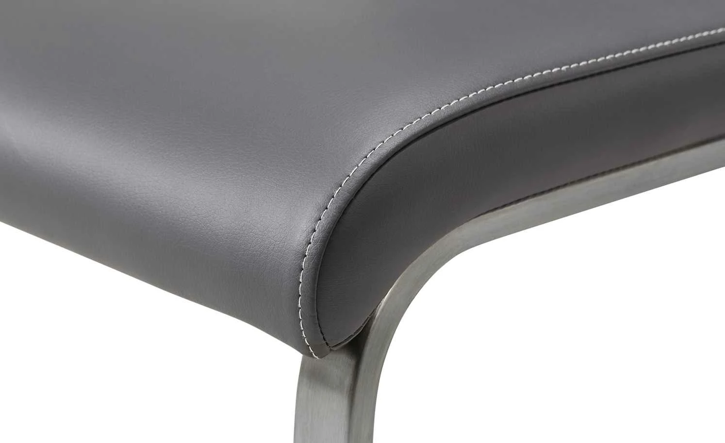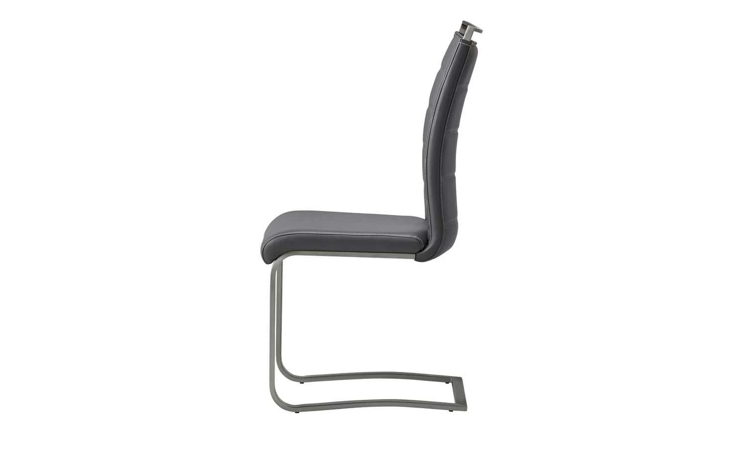 Auf dem Freischwinger Edita können Sie bei allen Mahlzeiten bequem sitzen. Das Gestell besteht aus einem Flachrohr aus Edelstahl. Die Oberfläche ist gebürstet. Dank der besonderen Gestellform schwingt der Stuhl leicht. Sitz und Rückenlehne sind mit Kunstleder bezogen. Die cremefarbenen Kontrastnähte setzen sich farblich vom Bezug ab. Ein Blickfang sind die horizontalen Absteppungen an der Rückenlehne.