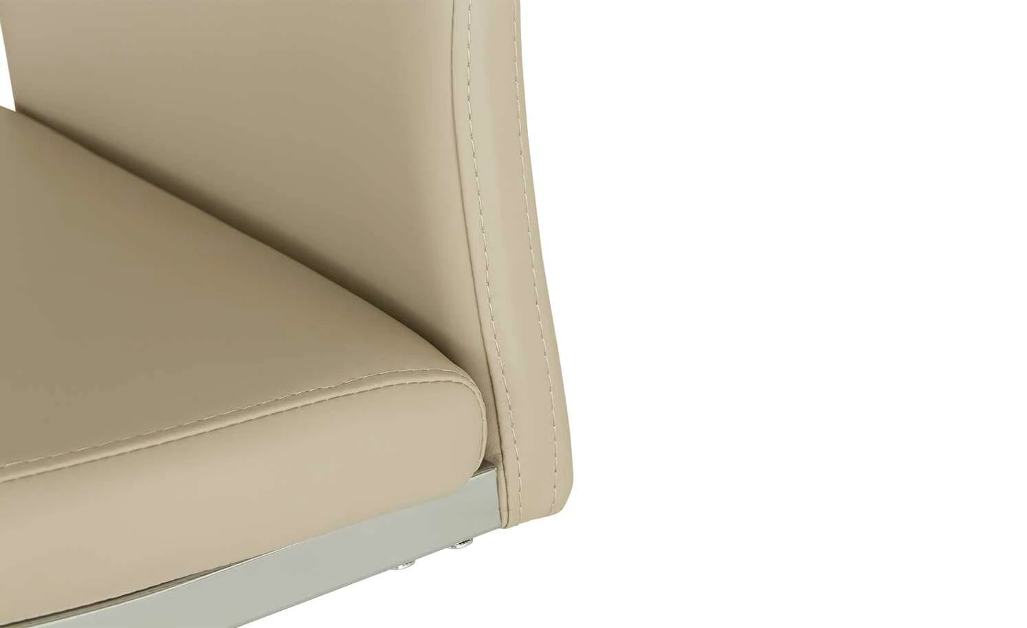 Sie möchten auch bei Tisch bequem sitzen? Mit dem Freischwinger Dean von uno geht das ganz wunderbar. Dean ist im Sitz- und Rückenbereich weich gepolstert. Durch das sanfte Schwingen wird der Stuhl noch gemütlicher. Dean ist mit robustem Kunstleder bezogen. Das Gestell aus verchromtem Metall ist stabil gearbeitet. Die Chromoptik setzt glänzende Akzente.