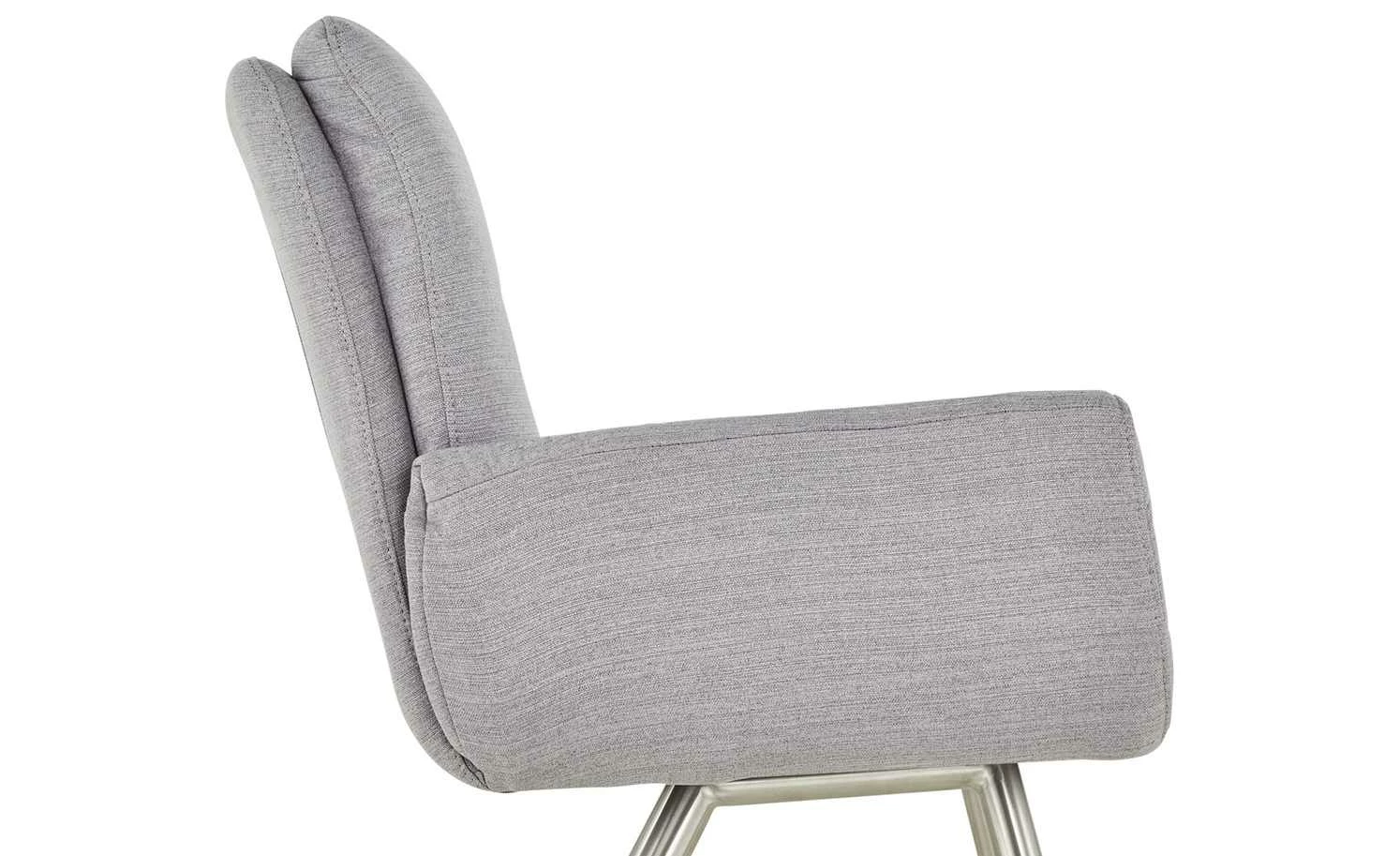 Mit seinem coolen Scandi-Look ist der Stuhl Ilka von uno ein Highlight für den Essbereich. Seine Sitzschale hat zudem die Optik eines Sessels und ist auch ebenso gemütlich. Der Rücken hat eine komfortable Höhe und lädt zum Anlehnen ein. Die Arme können Sie auf den Armlehnen ablegen. Für den Bezug ist eine softe Mikrofaser in Grau verwendet worden. Die Farbe harmoniert mit dem gebürsteten Edelstahlgestell.