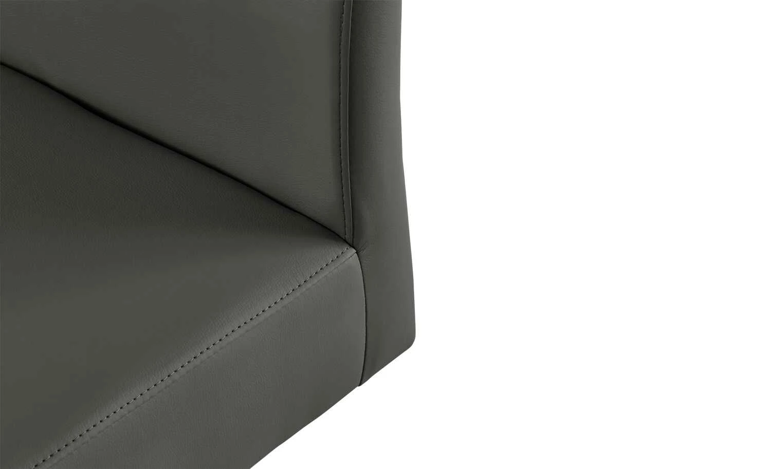 Die Sitzfläche und Rückenlehne von Lance sind rundum mit Kunstleder bezogen. Dieses sieht nicht nur geschmackvoll aus, sondern ist auch pflegeleicht und strapazierfähig. Das Gestell des Stuhls besteht aus gebürstetem Edelstahl und stellt einen eleganten Kontrast zum Kunstleder dar. Lance ist in vielen verschiedenen Farben erhältlich.