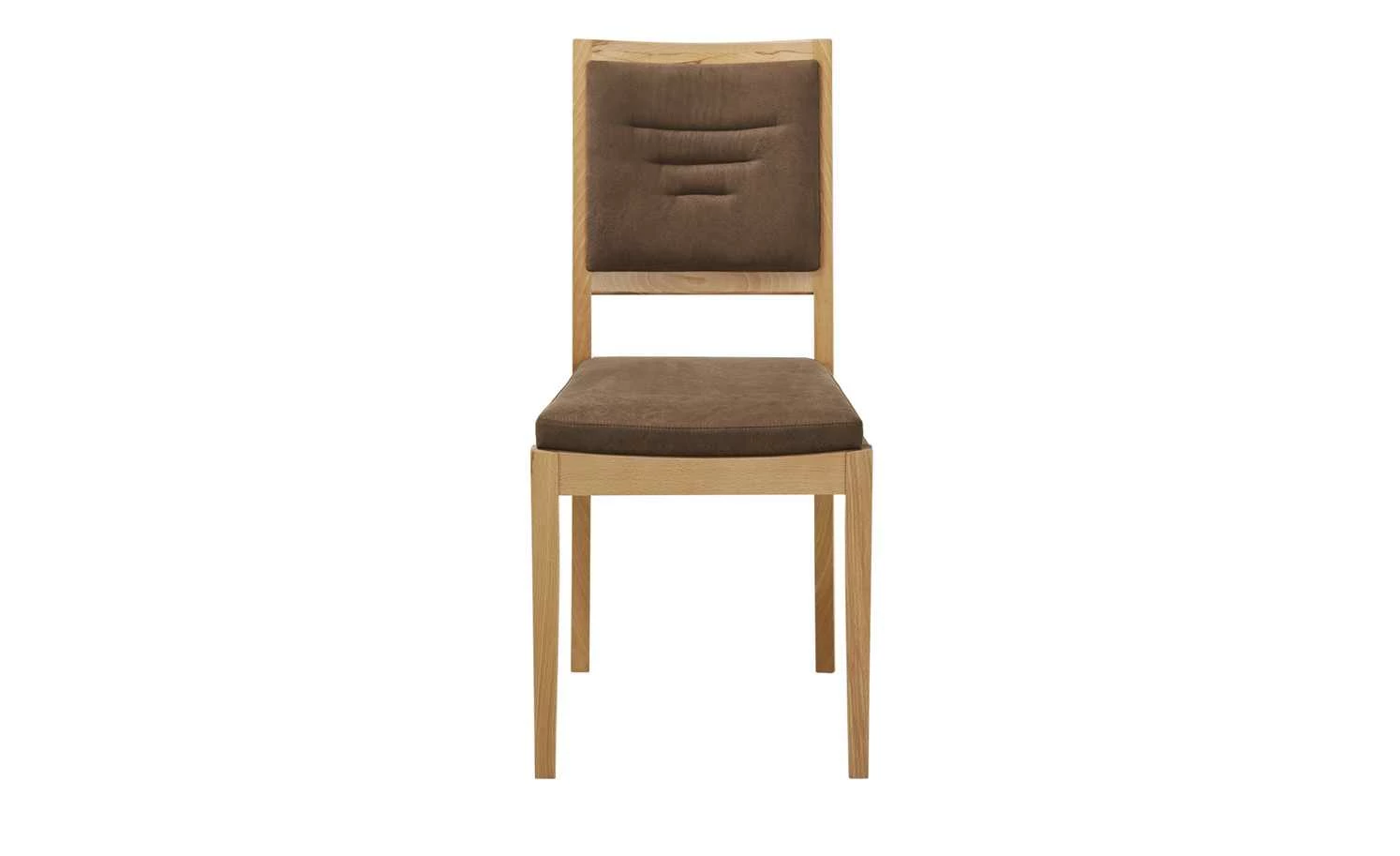 Der Stuhl Michel ist aus massiver Kernbuche gefertigt. Das stabile Holz sorgt für einen sicheren Sitz auf dem Stuhl. Außerdem hat es eine attraktive, natürliche Maserung. Die Oberfläche ist mit einem speziellen Wachseffektlack behandelt worden. Im Sitz- und im Rückenbereich finden sich weiche Polster aus Schaumstoff. Sie sind mit einem dunkelbraunen Webstoff bezogen.